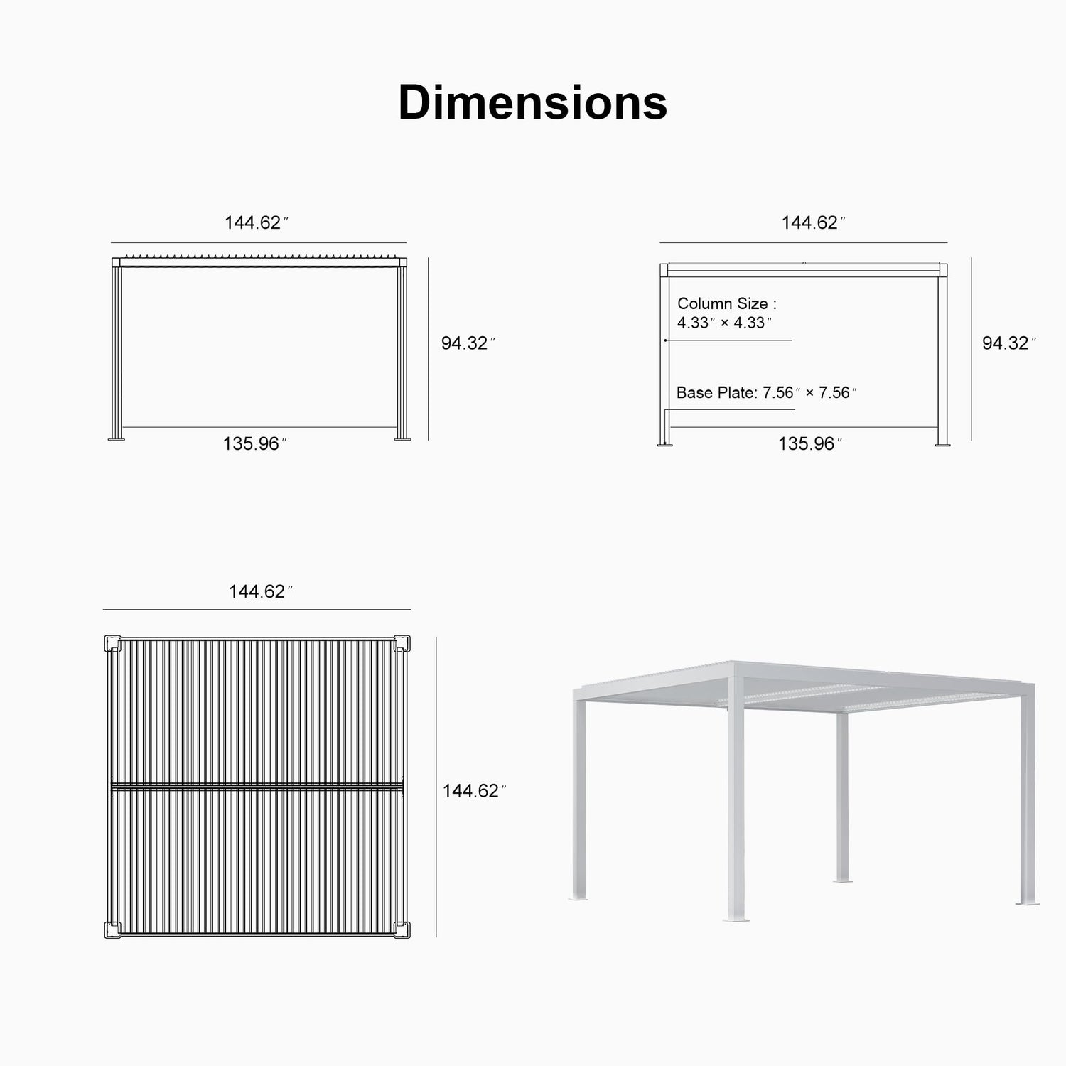 - Durable Space: The pergola size is 12' × 12'; design to fit different areas like decks; gardens; and yards; offering you the ideal outdoor sunroom experience