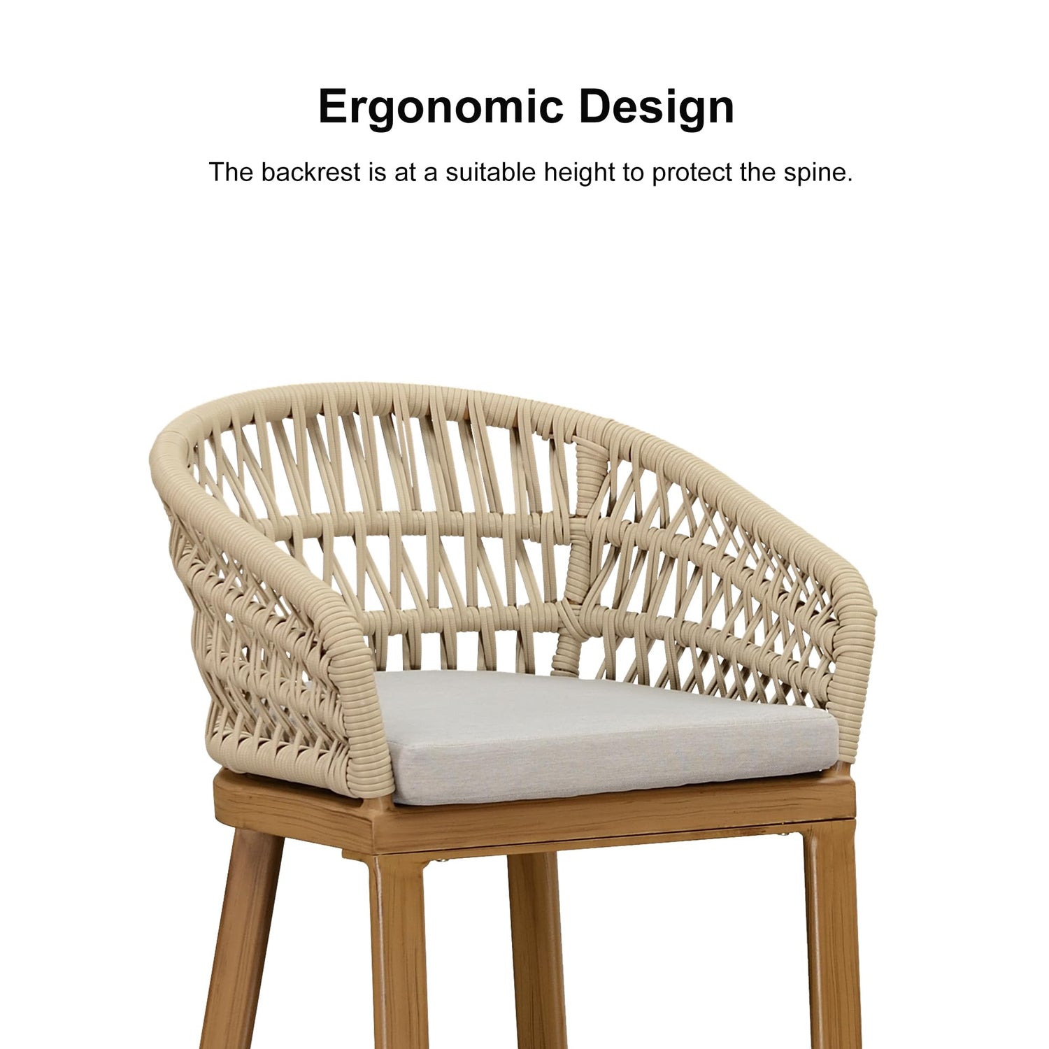 - Weather Resistant Rattan: Crafted with high-quality PE rattan material, these bar stools are built to withstand various weather conditions. They are resistant to fading, warping, and damage, ensuring long-lasting durability.