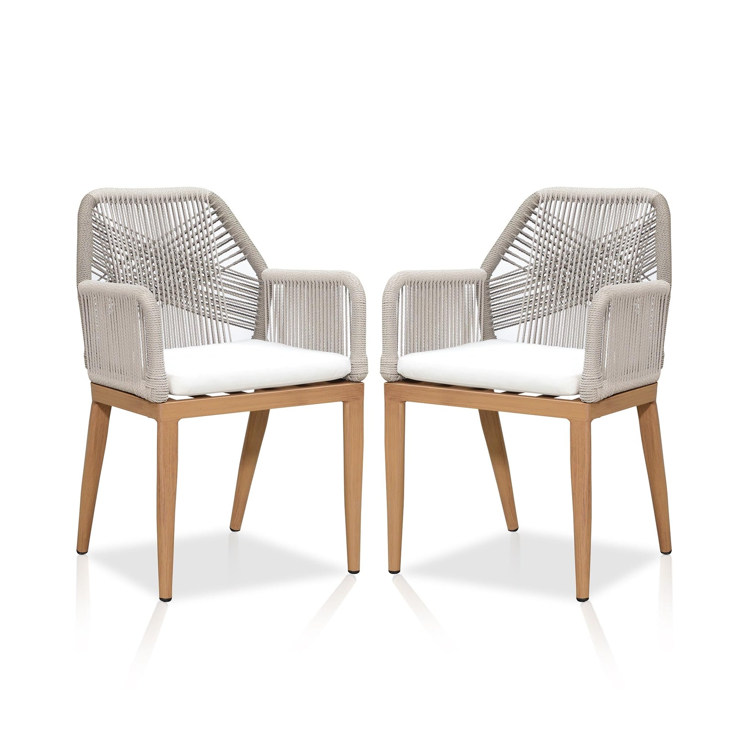 PURPLE LEAF Patio Dining Chair Set 2 Pieces Metal Modern Furniture Seating for Garden Kitchen Porch Outdoor Rattan Dining Chairs with Armrests and Cushions, Teak