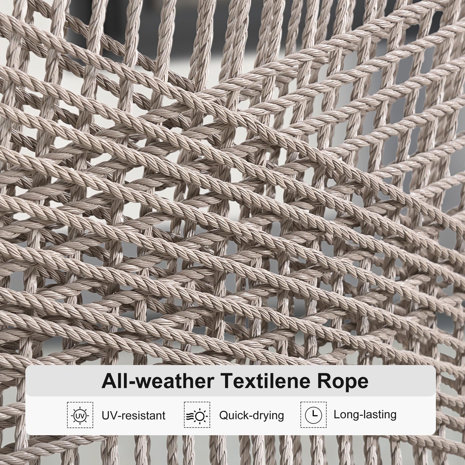 - All-Weather Textilene Rope: Hand-woven double-layer rope is more sturdy, it can withstand various outdoor weather conditions, quick-drying, no cracking for long lasting.