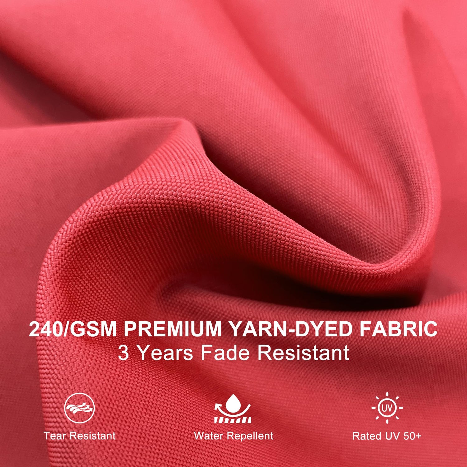 - High quality 240/gsm yarn-dyed polyester fabric, UV resistant, water-repellent and colorfast fadeless