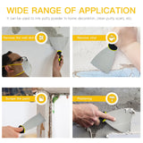 - [Wide Application] -The wall filler tool is ideal for scraping paint and decals, removing vinyl or paper wall covering, loose putty and the cement, patching dents cracks holes and so on. Also for painting plasterboard, puttying windows, filling wall cracks and holes, building walls, repairing cracks in drywall, stucco baking, stripping, patching dents and much more