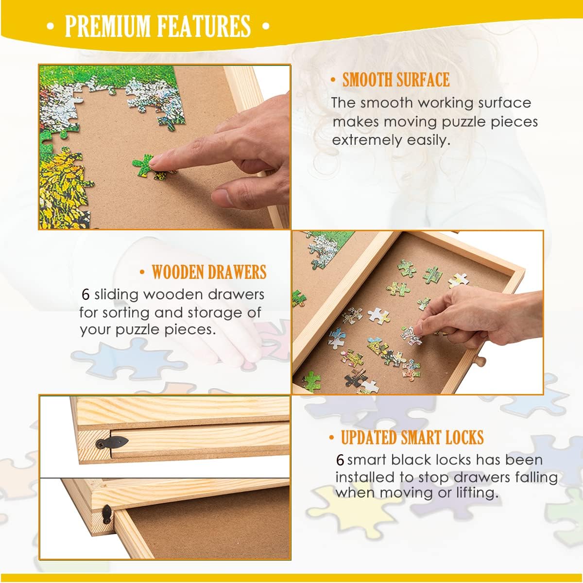 - ✅[With 6 Sliding Drawers]: Qiqidog puzzle board features 6 drawers and a cover, providing ample space for storing your puzzle pieces and keeping them organized. No more worries about losing or misplacing any pieces! Also with an extra translucent cover, it can protect your puzzle table from getting wet, dust and the scratches from pets.