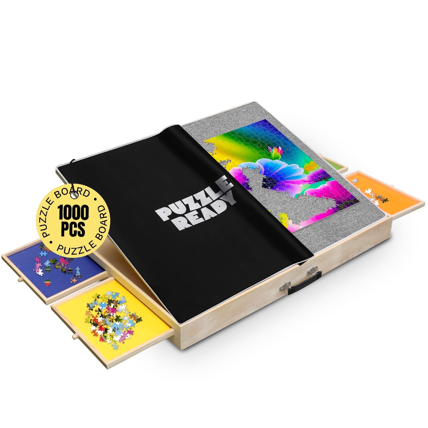 - 🧩 Premium 1000 Piece Puzzle Board - Your new Wooden Puzzle Plateau workspace measures 24" X 30" and fits most of 1000 Piece Jigsaw puzzles. Four Color-coded Puzzle Sorting Trays help you keep jigsaw puzzles organized—keep your unfinished puzzles safe until next time with the puzzle cover included along with puzzle tray sorters. "Ready to go bigger? Have a look at our Puzzle Board Tilting 1500 Pieces!"