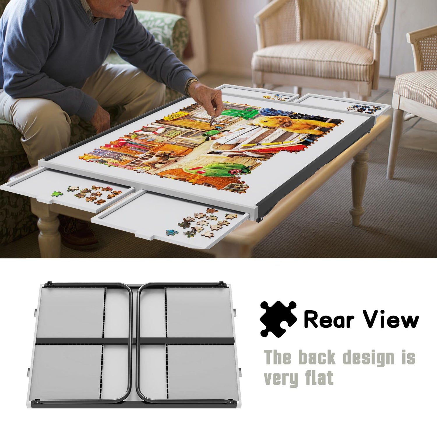 Puzzle Table 1500pcs,Jigsaw Puzzle Table Metal,Puzzle Table with Drawers,Puzzle Board with Legs,Grey and Black Color,Puzzle Tables for Adults with Drawers,Jigsaw Puzzle Board with Drawers