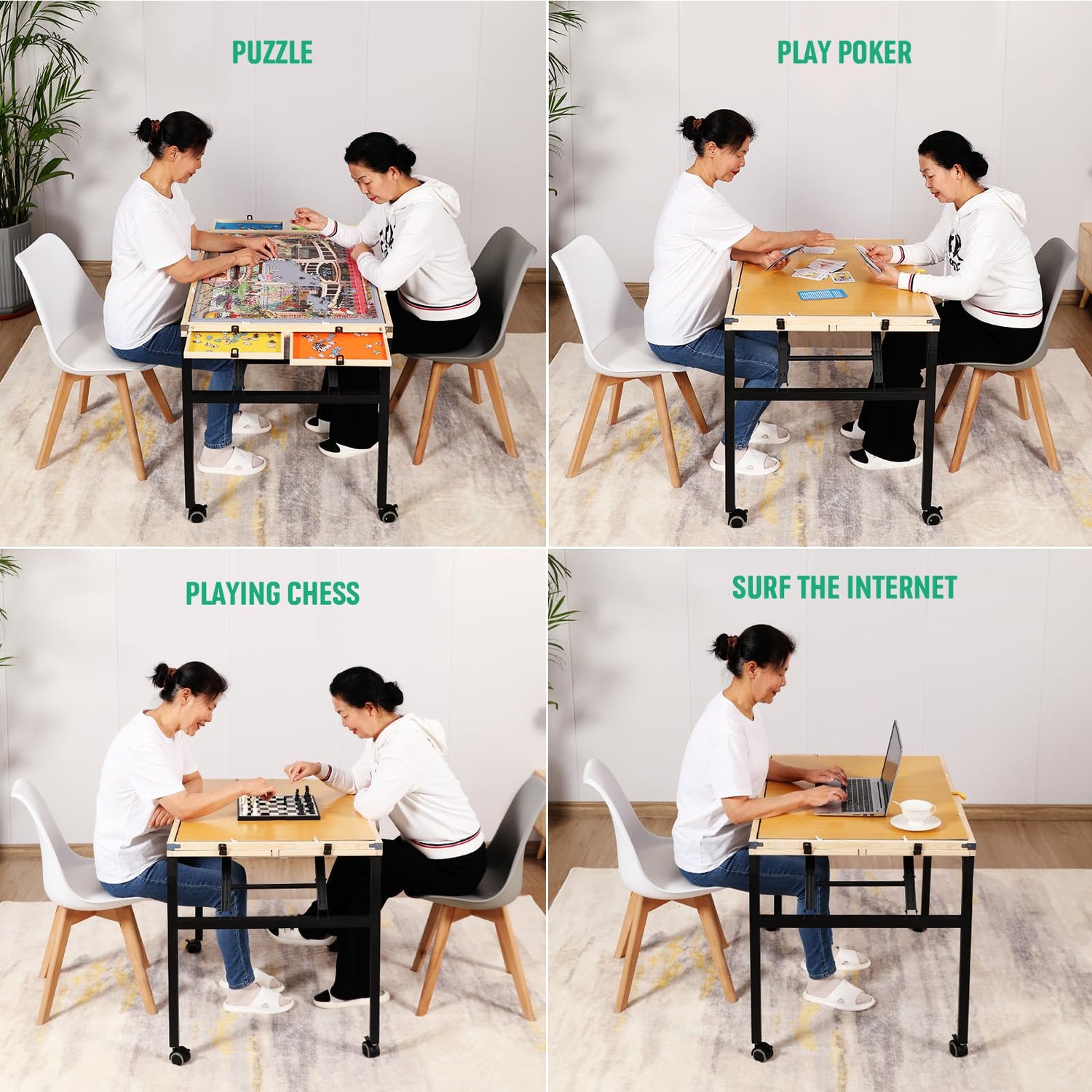 - VERSATILE AND MULTI-SCENE - Our versatile puzzle tables for adults can slide near the bed for easy work, from home or to enjoy breakfast on a lazy morning, or they can be placed next to a sofa for board games or reading books, doubling as a temporary family game table.