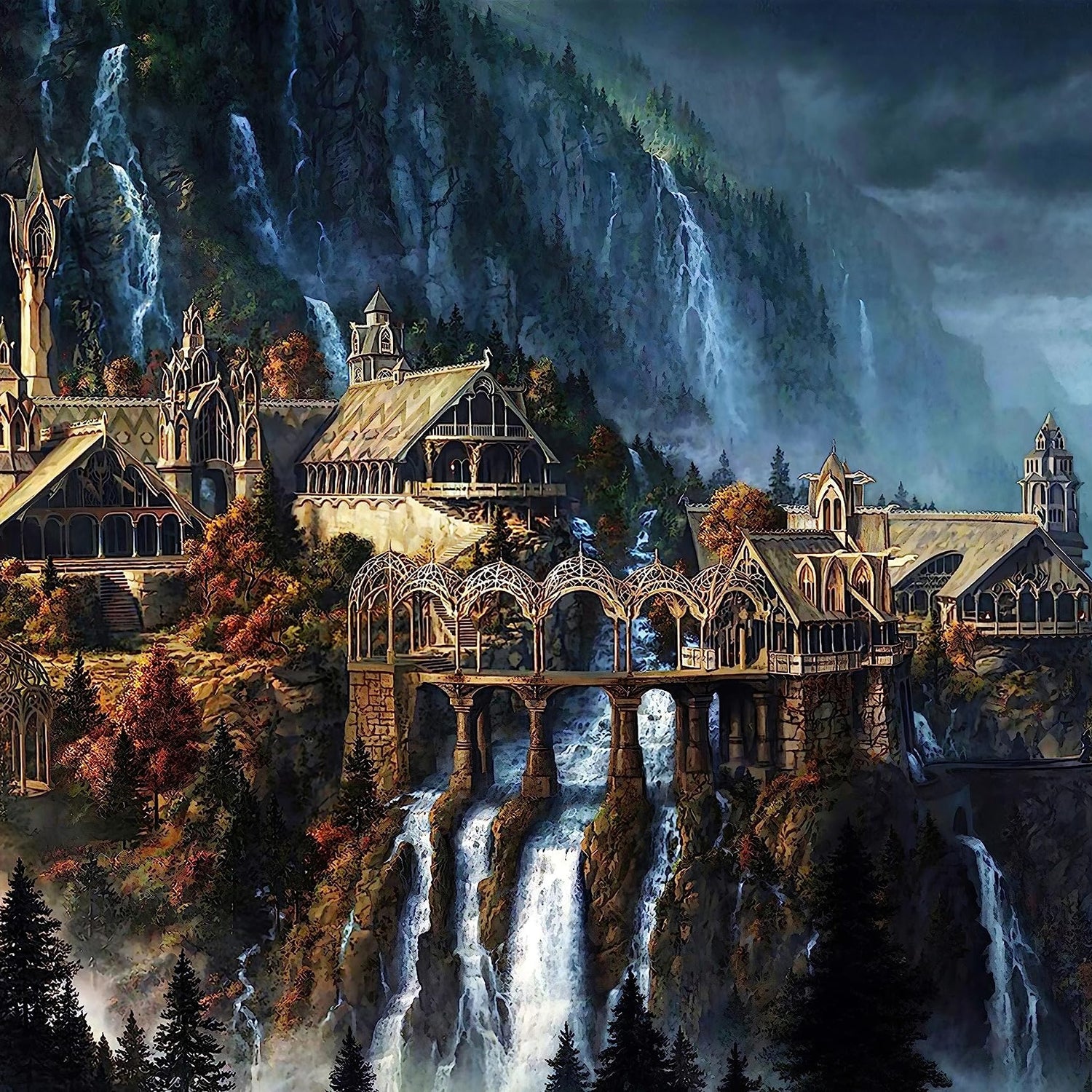 Puzzles for Adults 1000 Pieces,Lord of The Rings Puzzle,Waterfall Town 1000 Piece Puzzle for Adults Artwork Jigsaw Puzzle Family Game Puzzle