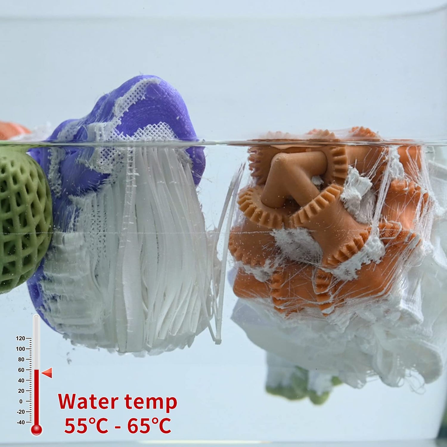 - 【Attention Please】This PVA filament is insoluble in water at room temperature, but it will soften at a water temperature of 55-60°C to achieve the purpose of easily removing the support. If you want PVA filament that is completely soluble in water, please do not buy this product. If your main purpose is to remove the support more easily and you don't care whether the PVA completely melts in the water, then this PVA is a better choice.