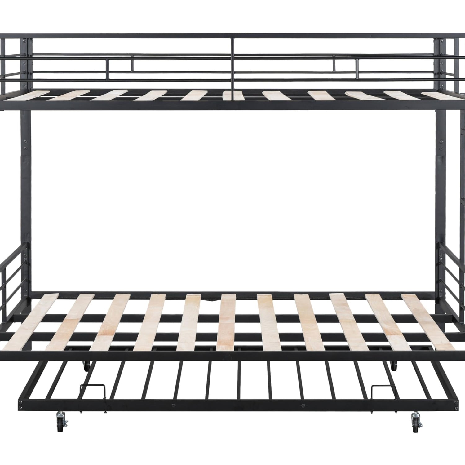 PVWIIK King Over King Bunk Bed with Trundle and Ladder for Kids,Adult,Teenagers,Heavy Duty Metal Bunk Bed w/Full Length Guardrail for Dorm,Bedroom,Guest Room,No Box Spring Needed,Black