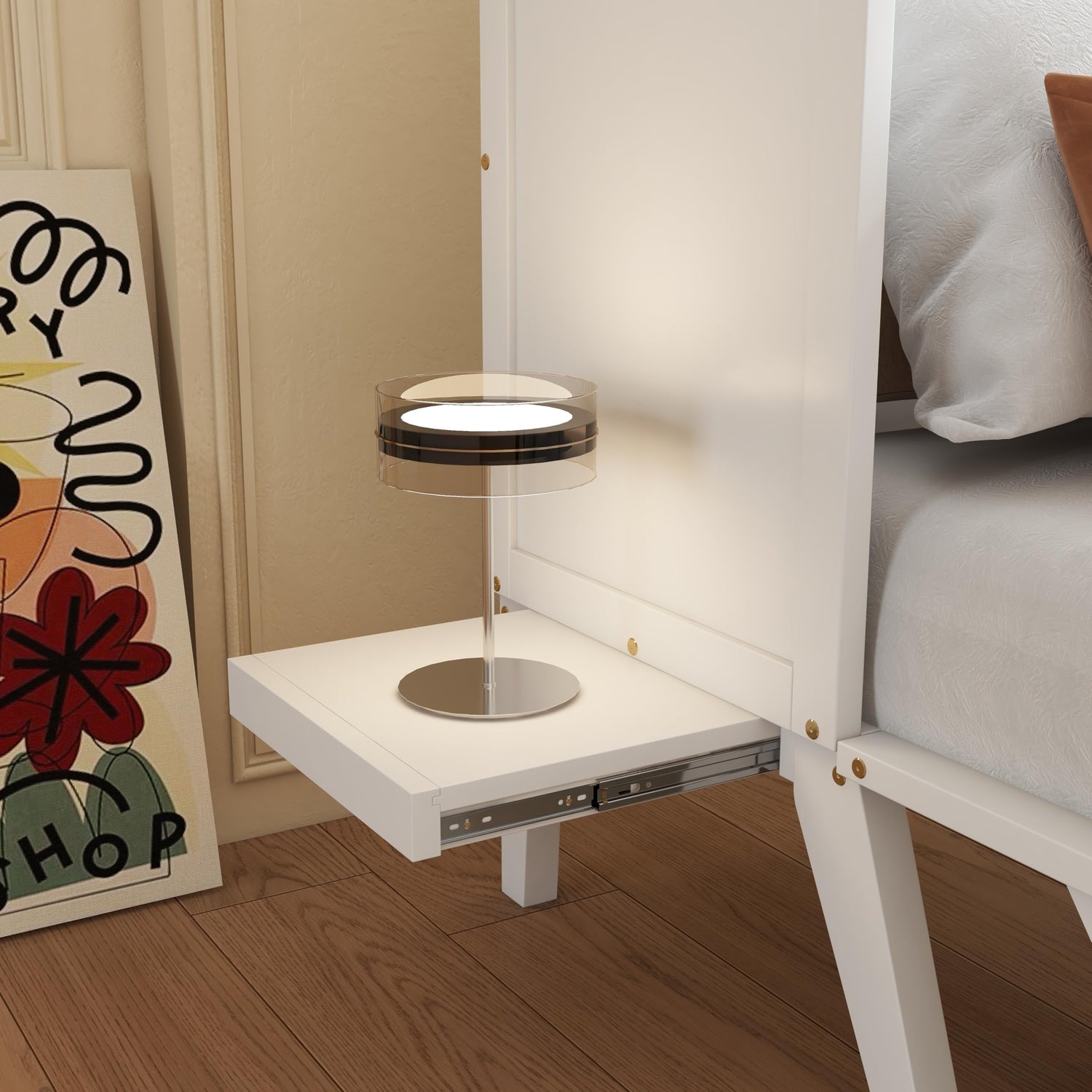 - [Charging Station with Dual Power] The bed design offers both a space-saving solution and convenient charging facility. The built-in charging station have two power outlets and two USB ports for quick and easy charging of phones, laptops, and other electronic devices, keeping the area organized and clutter-free.