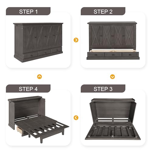 - Multipurpose Murphy Bed Cabinet:The murphy bed is housed in a beautiful cabinet with large drawer and an electrical outlet, so the cabinet easily doubles as a TV stand, storage area or a convenient bed for overnight guests.