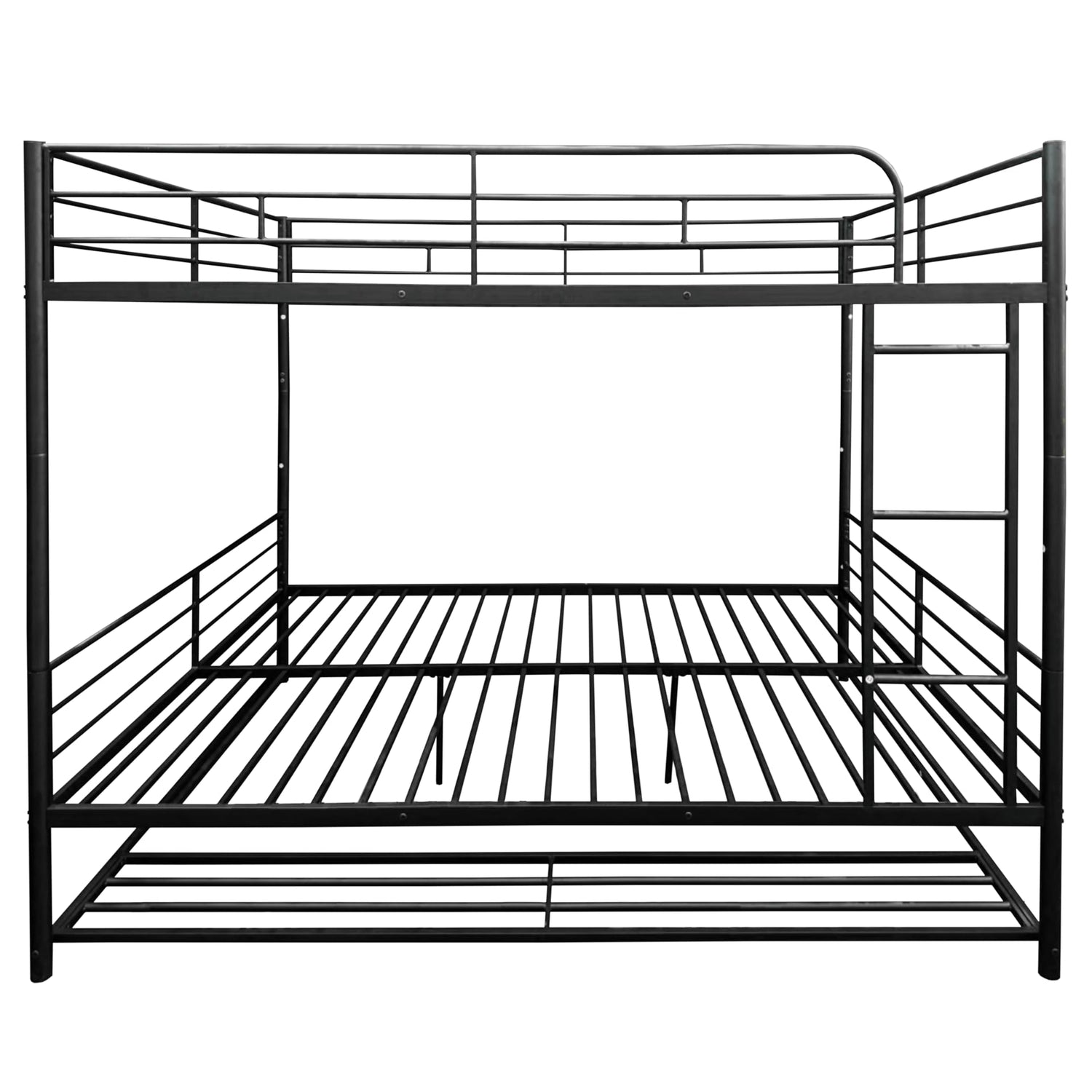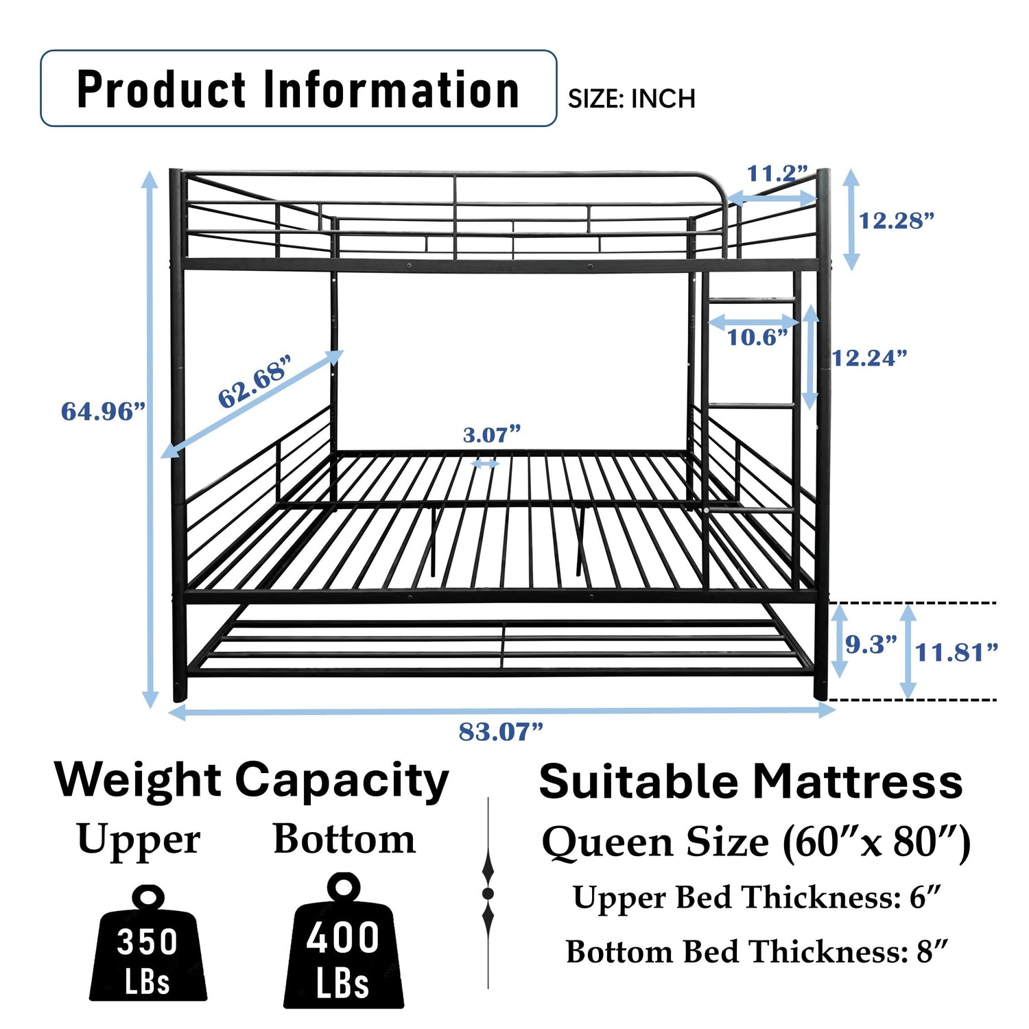 PVWIIK Queen Over Queen Bunk Bed with Shelf & Full Length Guardrail,Convertible Bunk Bedframe w/Ladder for Adults,Teens, Kids,No Box Spring Needed, Black