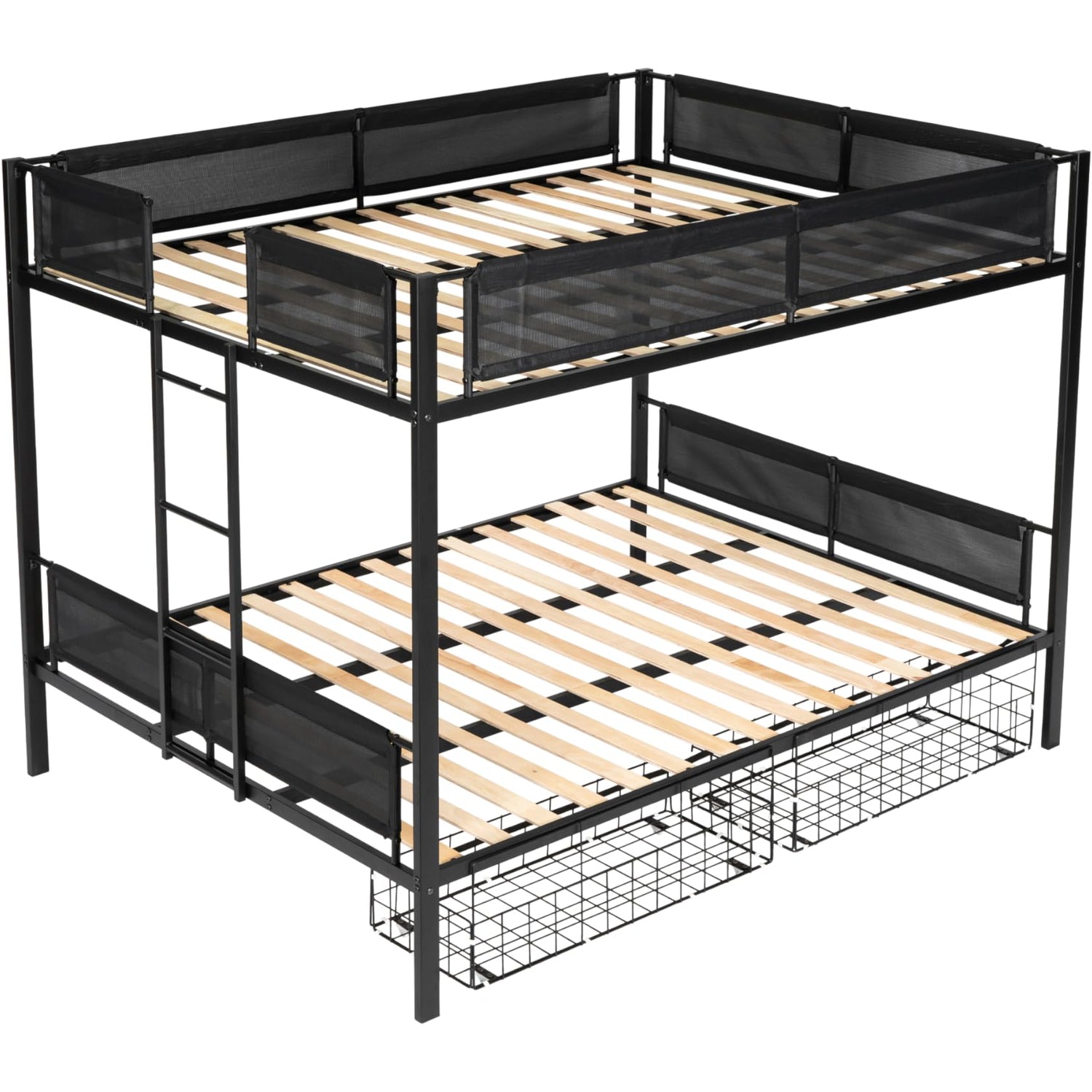 PVWIIK Queen Over Queen Metal Bunk Bed with Storage Drawers for Dorm,Bedroom,Guest Room,Heavy Duty Bunk Bed w/Ladder & Full Length Guardrail for Kids,No Box Spring Needed, Black