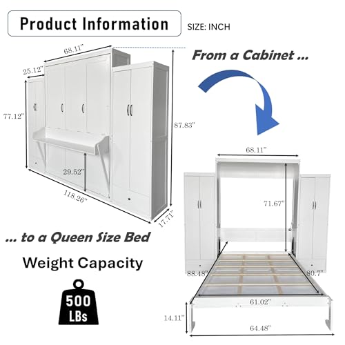 - Maximize Your Space with Style and Functionality: Transform your living area with our queen-size Murphy bed, the perfect solution for small apartments, guest rooms, and multi-purpose spaces. Designed to fold seamlessly into the wall, it frees up valuable floor space while maintaining a sleek and sophisticated appearance.