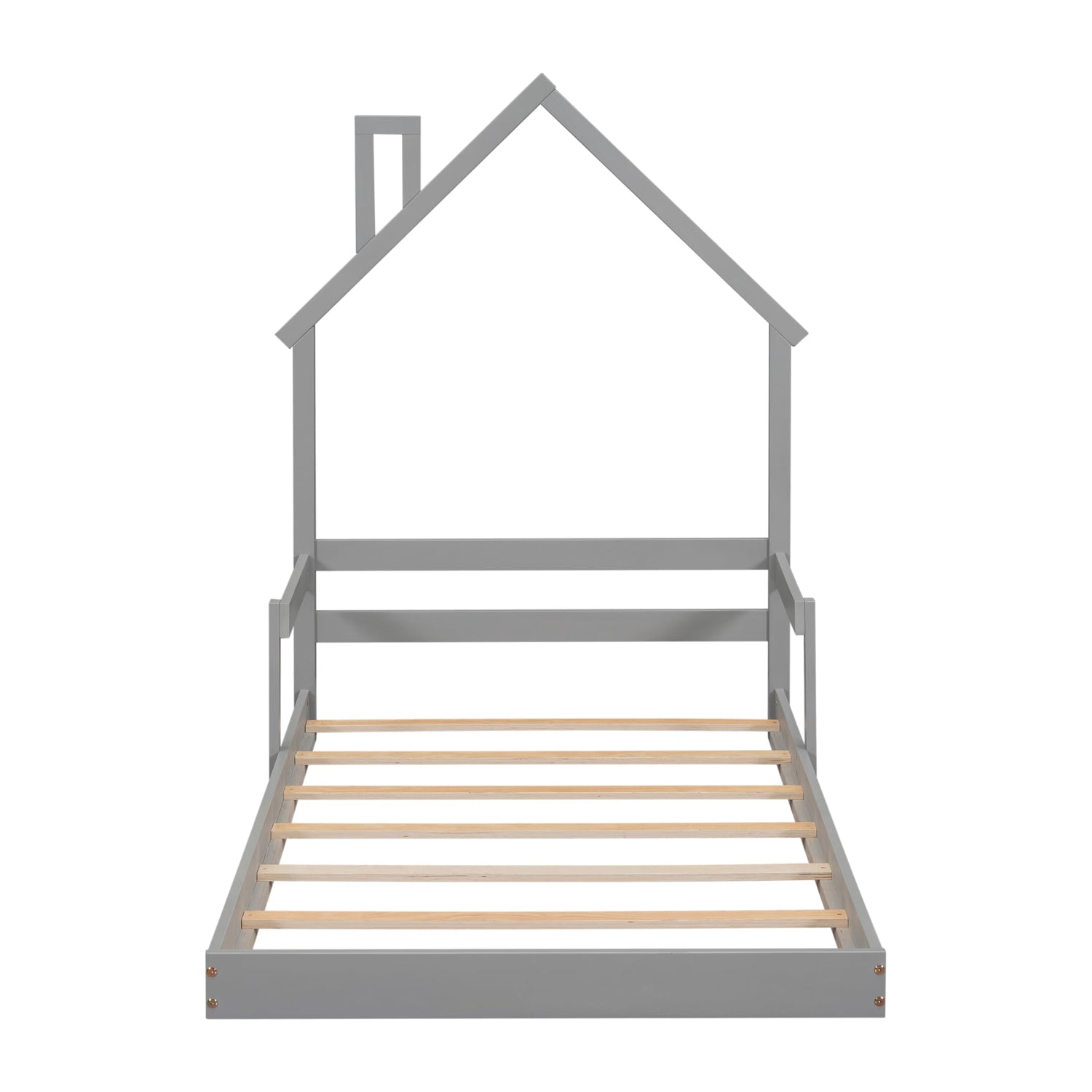 PVWIIK Twin Floor Bed with Roof & Safety Guardrails,Montessori Floor Bed for Boys Girls Bedroom,No Box Spring Needed, Grey