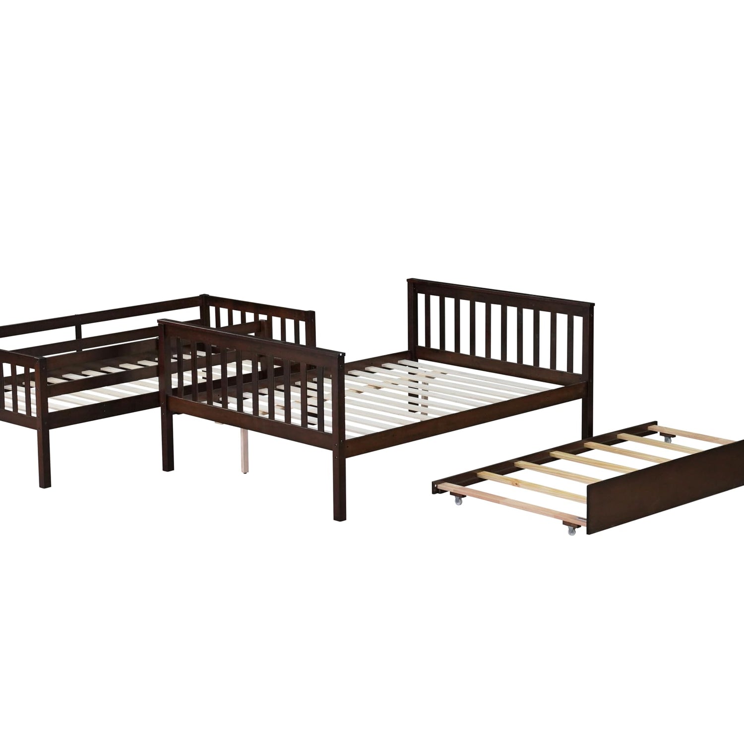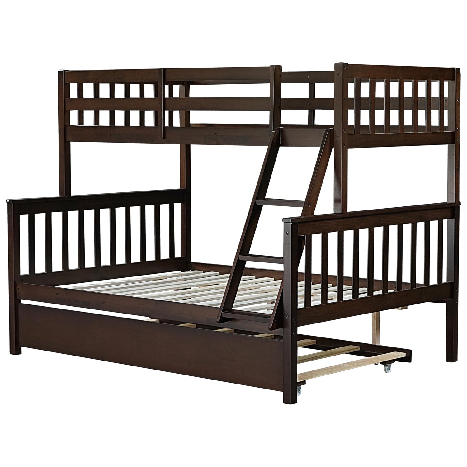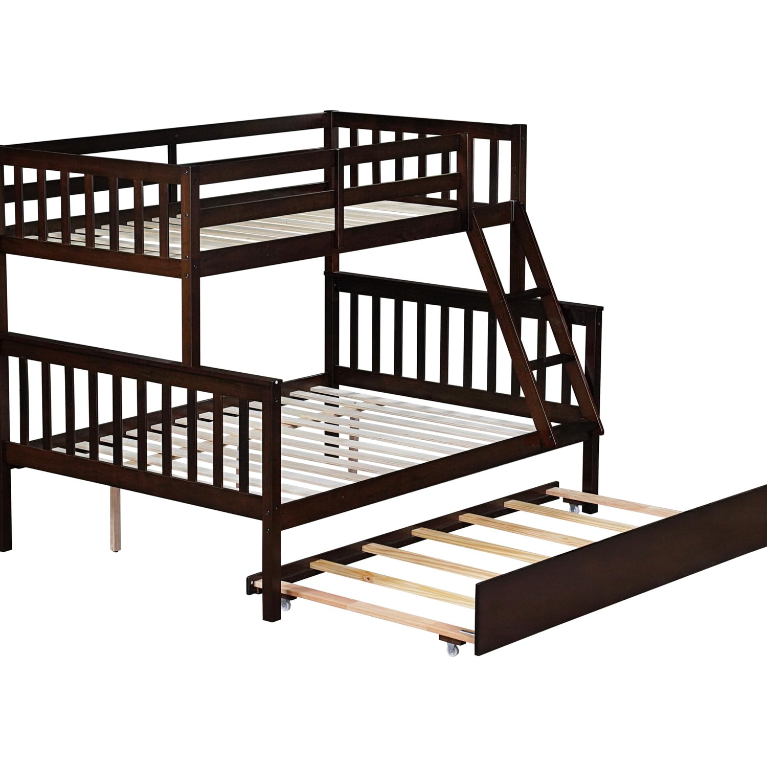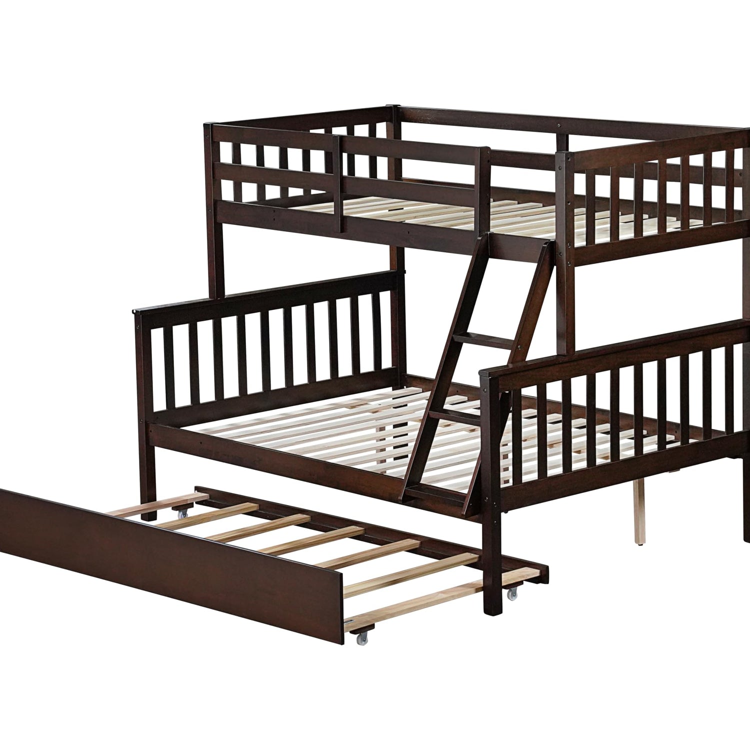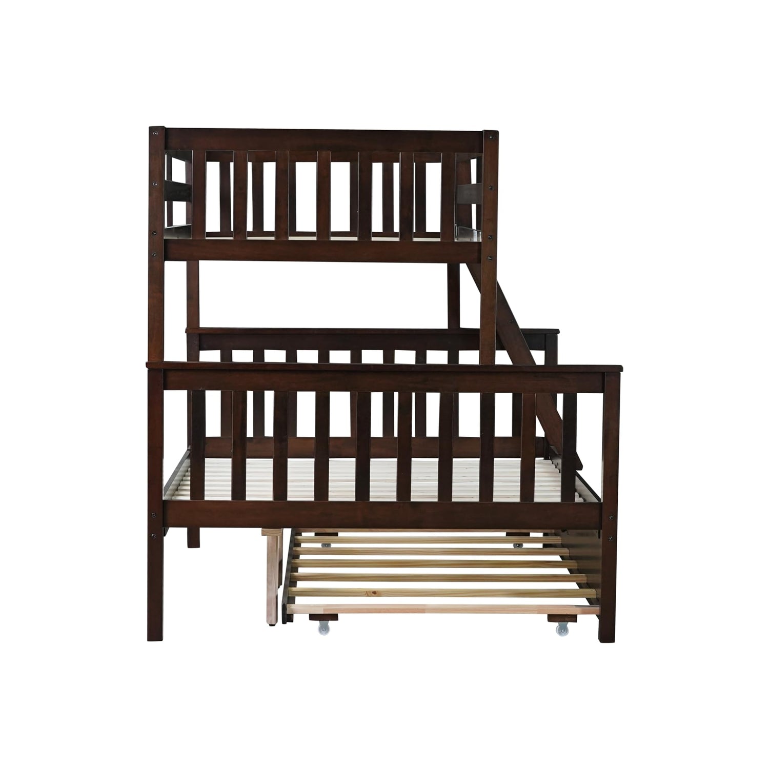 PVWIIK Twin Over Full Bunk Bed with Trundle & Ladder & Safety Guardrail,Solid Wood Bunk Bed for Kids Adults Teens Bedroom,Convertible to 2 Separated Bed,No Box Spring Needed,Easy Assembly, Espresso
