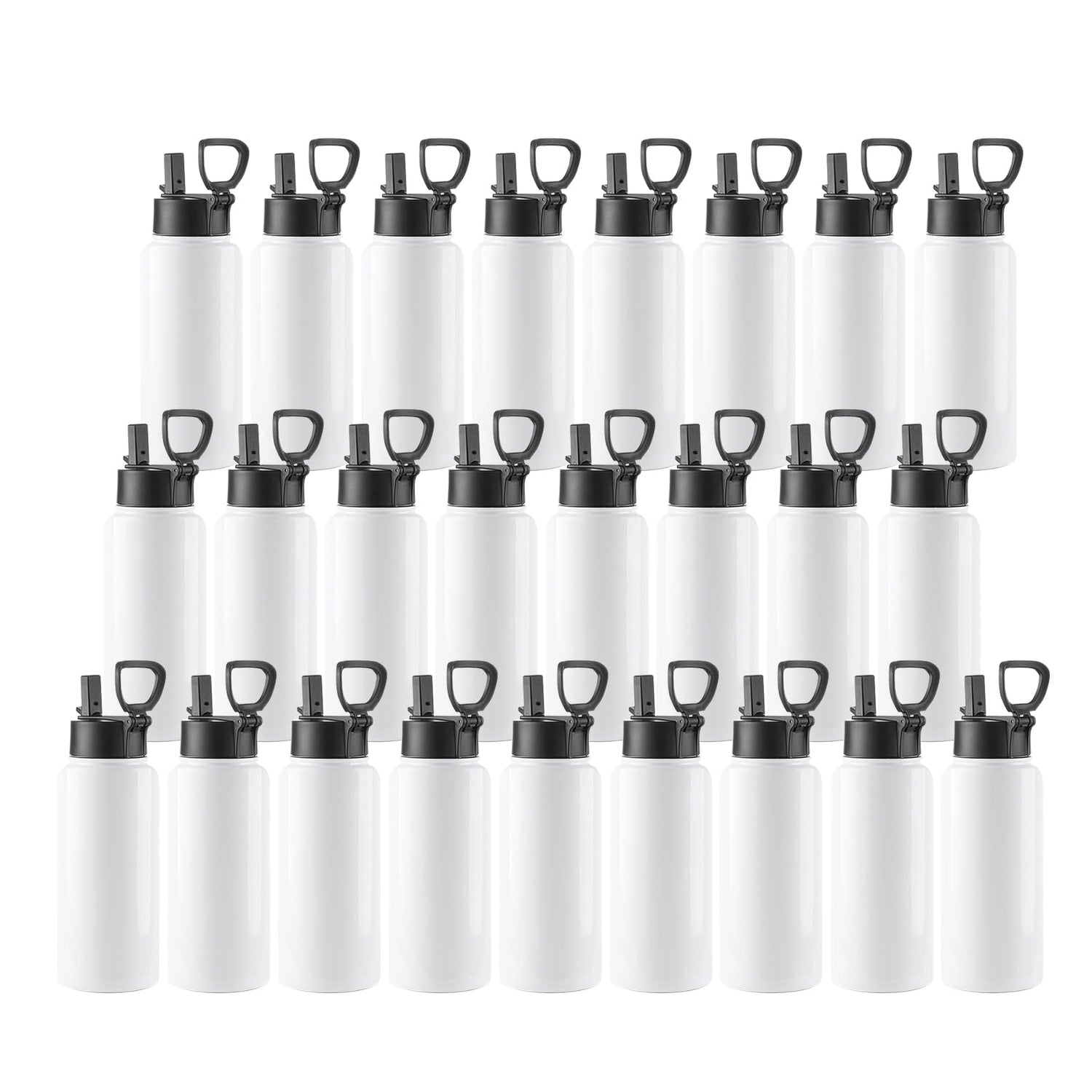 PYD Life 25 Pack Sublimation Water Bottle Sports Bulk 32 OZ White Stainless Steel Tumbler Cups with Straw and Portable Handle for Tumbler Heat Press Sublimation Oven Printing