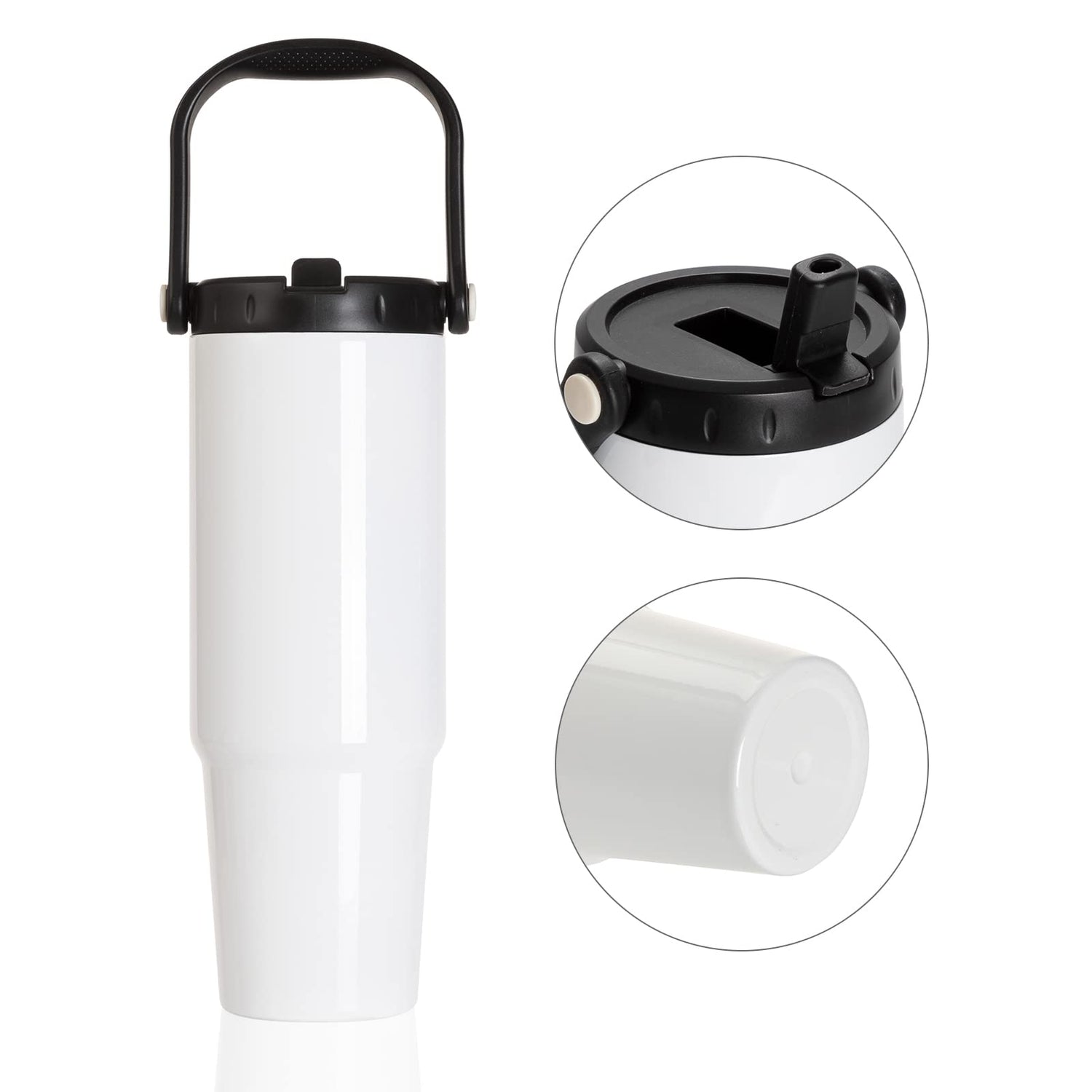 PYD Life 4 Pack Sublimation Tumblers Blanks 36 OZ White Vacuum Insulated with Portable Lid and Sippy Up Straw Travel Coffee Mugs Cups for Tumbler Heat Press Sublimation Oven Printing
