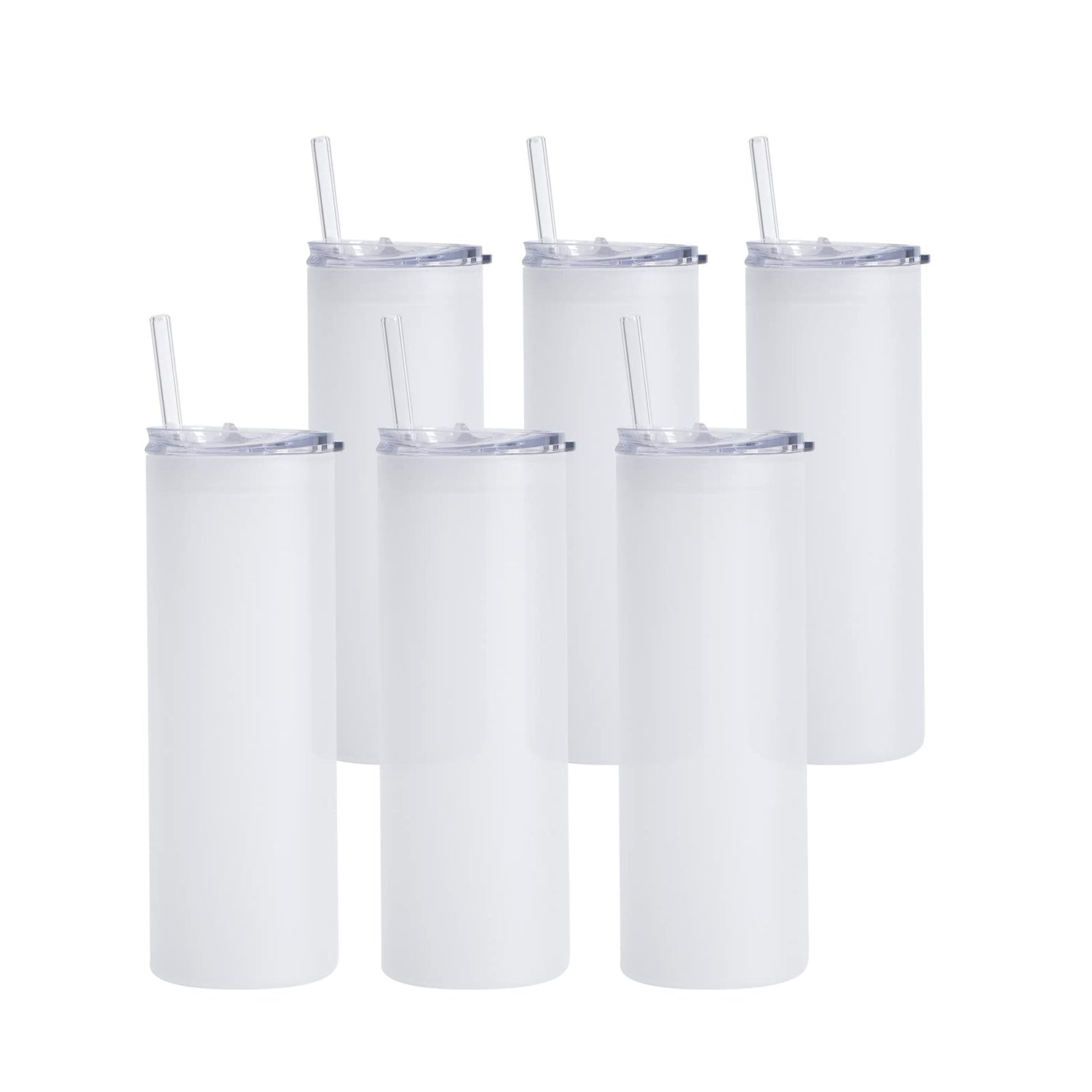 PYD Life Sublimation Glass Blanks Skinny Tumbler Frosted 25 OZ Straight Tumbler Coffee Juice Cups with Lid and Glass Straw for Tumbler Press Sublimation Print 6 Pack