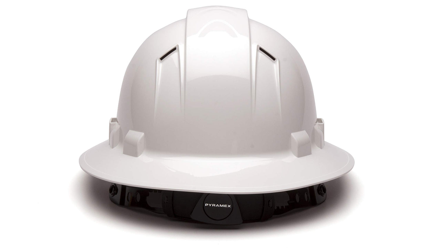 PYRAMEX Ridgeline Full Brim Hard Hat, Vented, 4-Point Ratchet Suspension, White