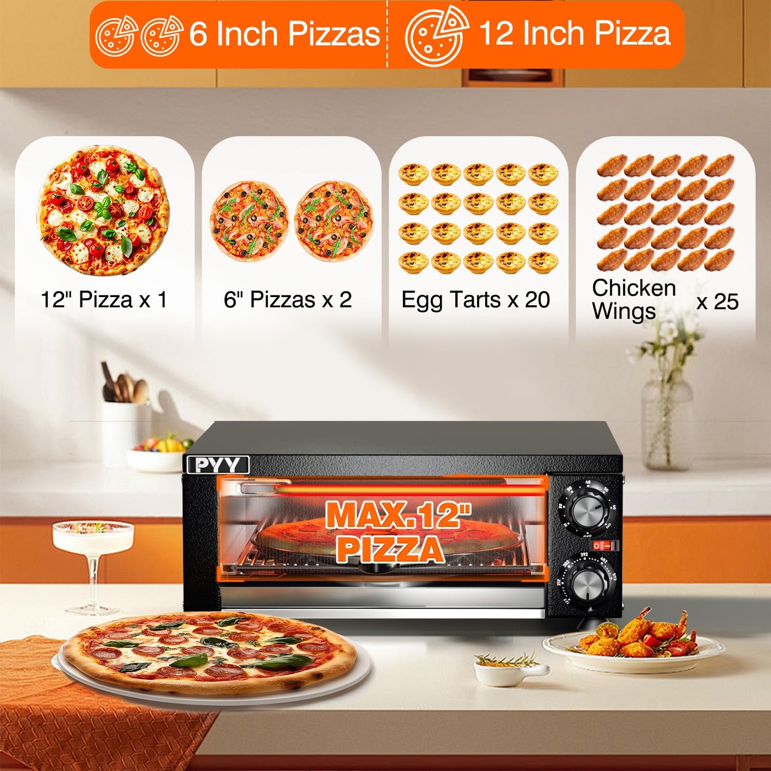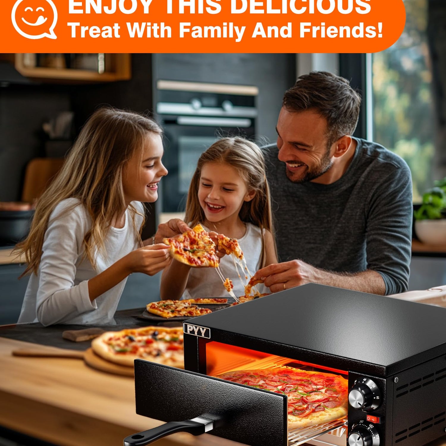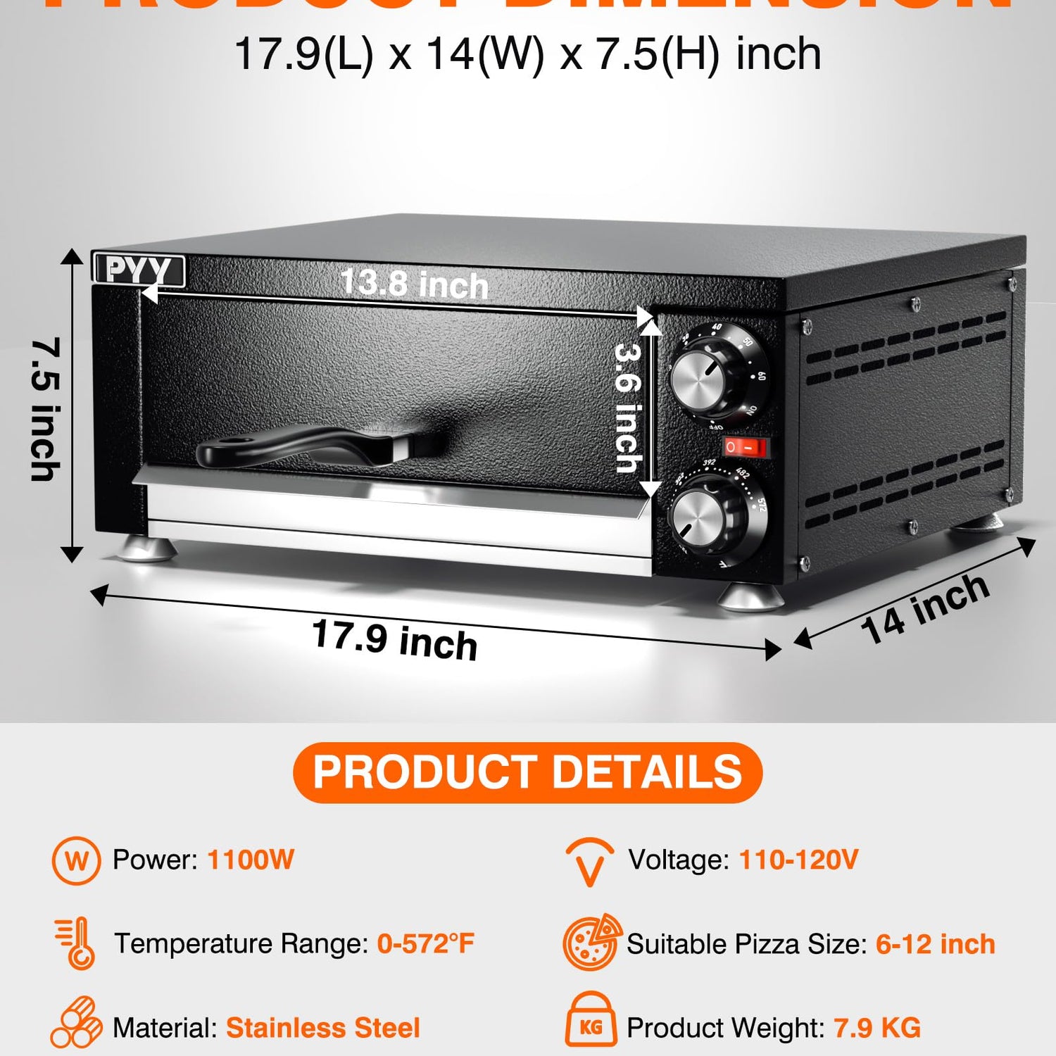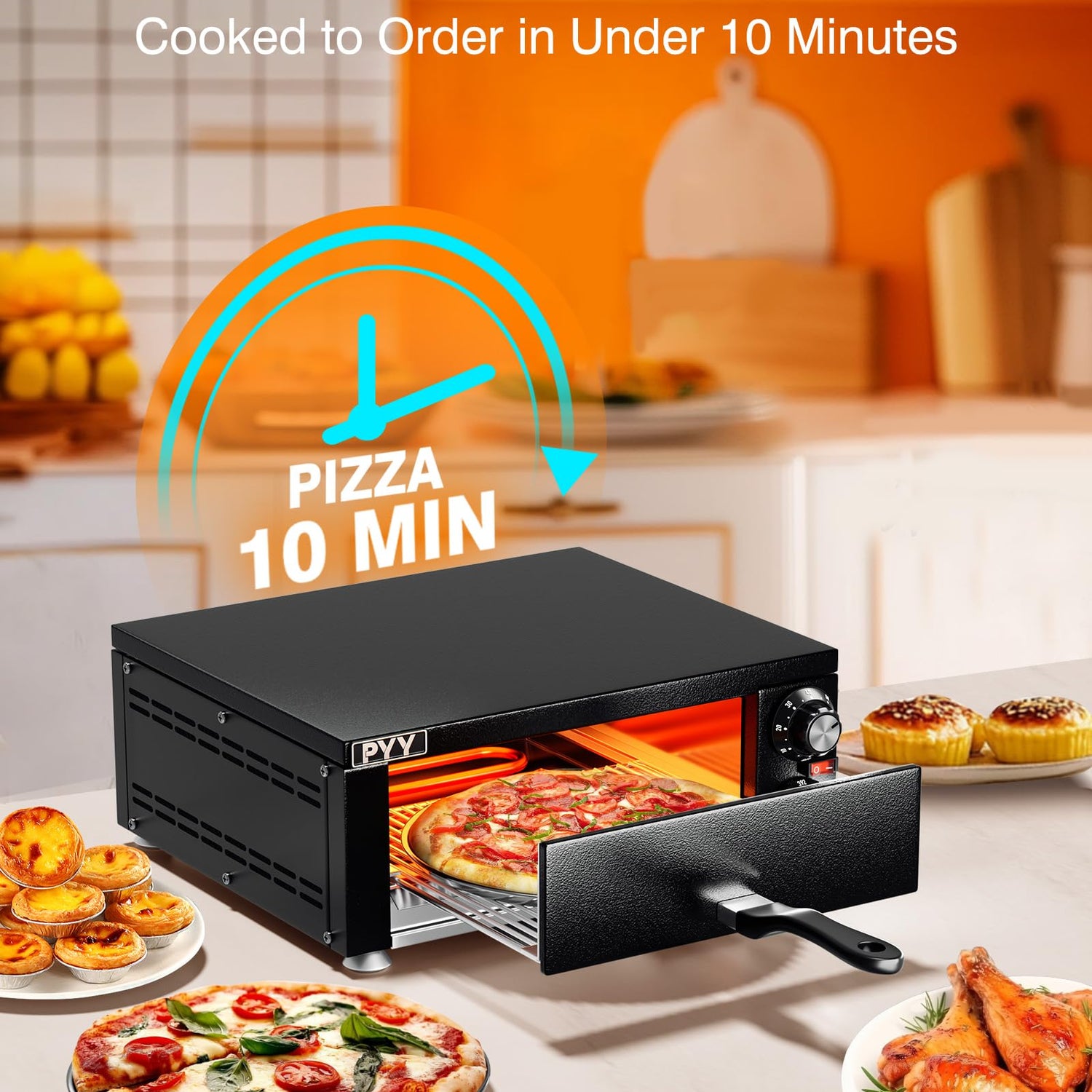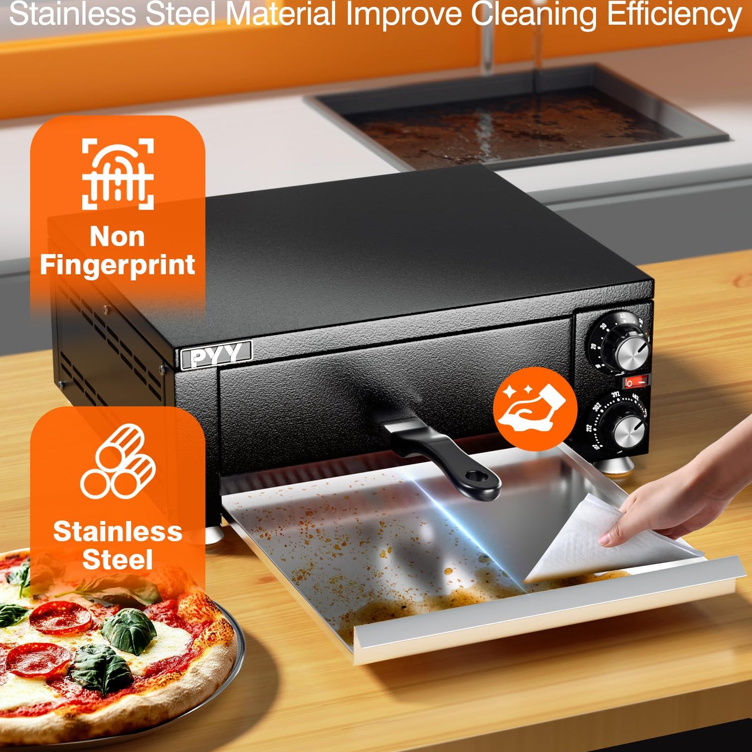 - Easy to clean: PYY pizza oven indoor electric covered with wrinkle black paint is oil stain and fingerprint resistant and easy to clean. The removable crumb tray makes it easy to remove crumb