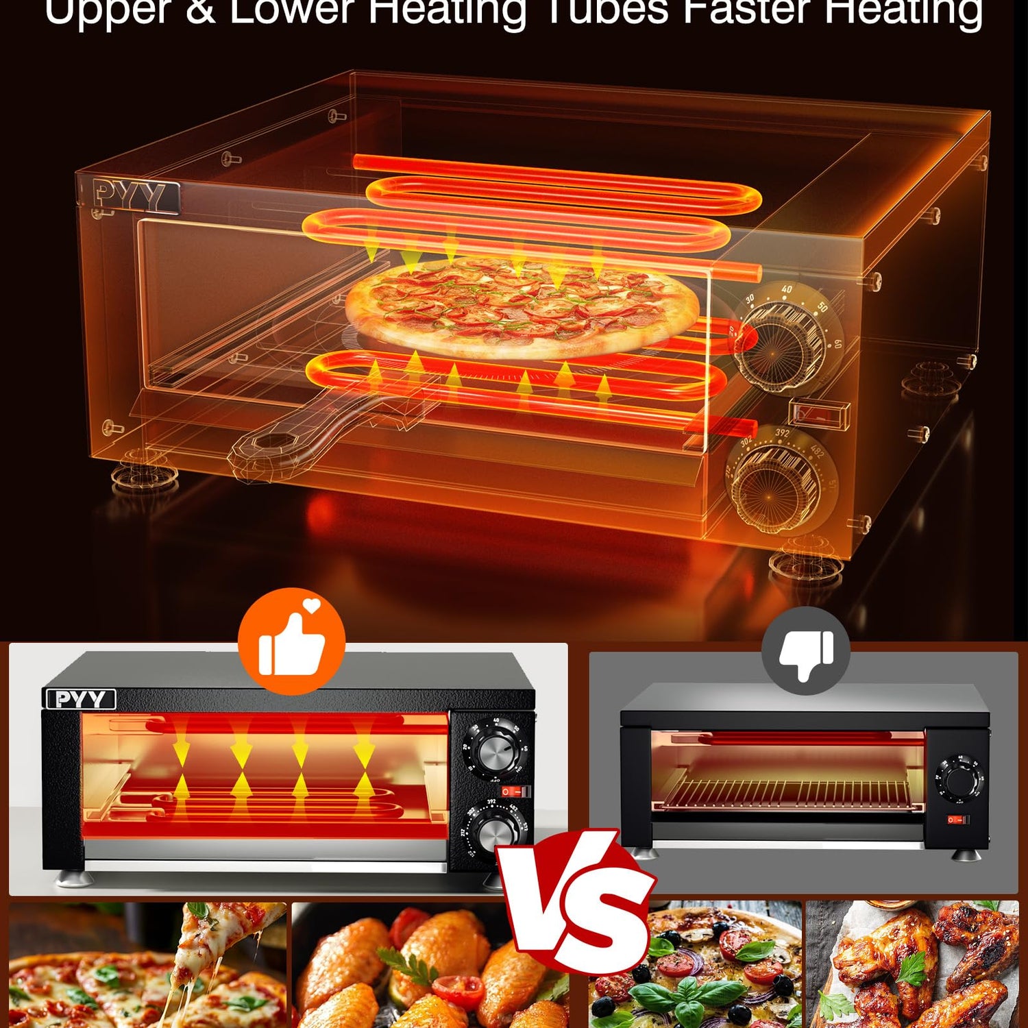 PYY Electric Pizza Oven Indoor Countertop Pizza Oven Commercial Pizza Maker Machine for Home with Timer Stainless Steel Pizza Cooker