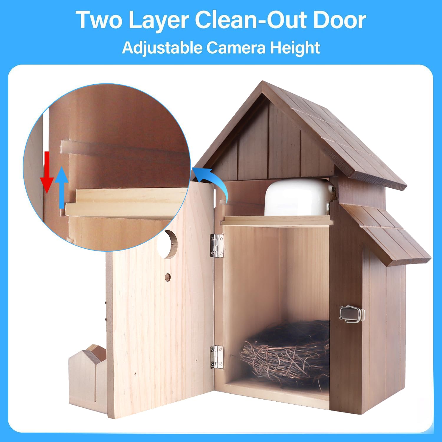 - Suitable for Multi Species: Designed with a front panel our birdhouse is the perfect home for a variety of garden bird species. From Eastern Bluebirds to Carolina Wrens, Hairy Woodpeckers, Nuthatches, and more, you can target the opening size to attract the birds you love to see.
