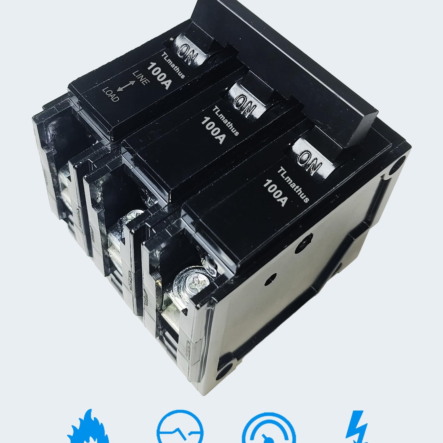 - 100 amp circuit breaker is made of high quality insulation material. Insulation safety, fireproof and anti-drop, strong oxidation resistance and long service life.Produced by TLmathus professional manufacturer.