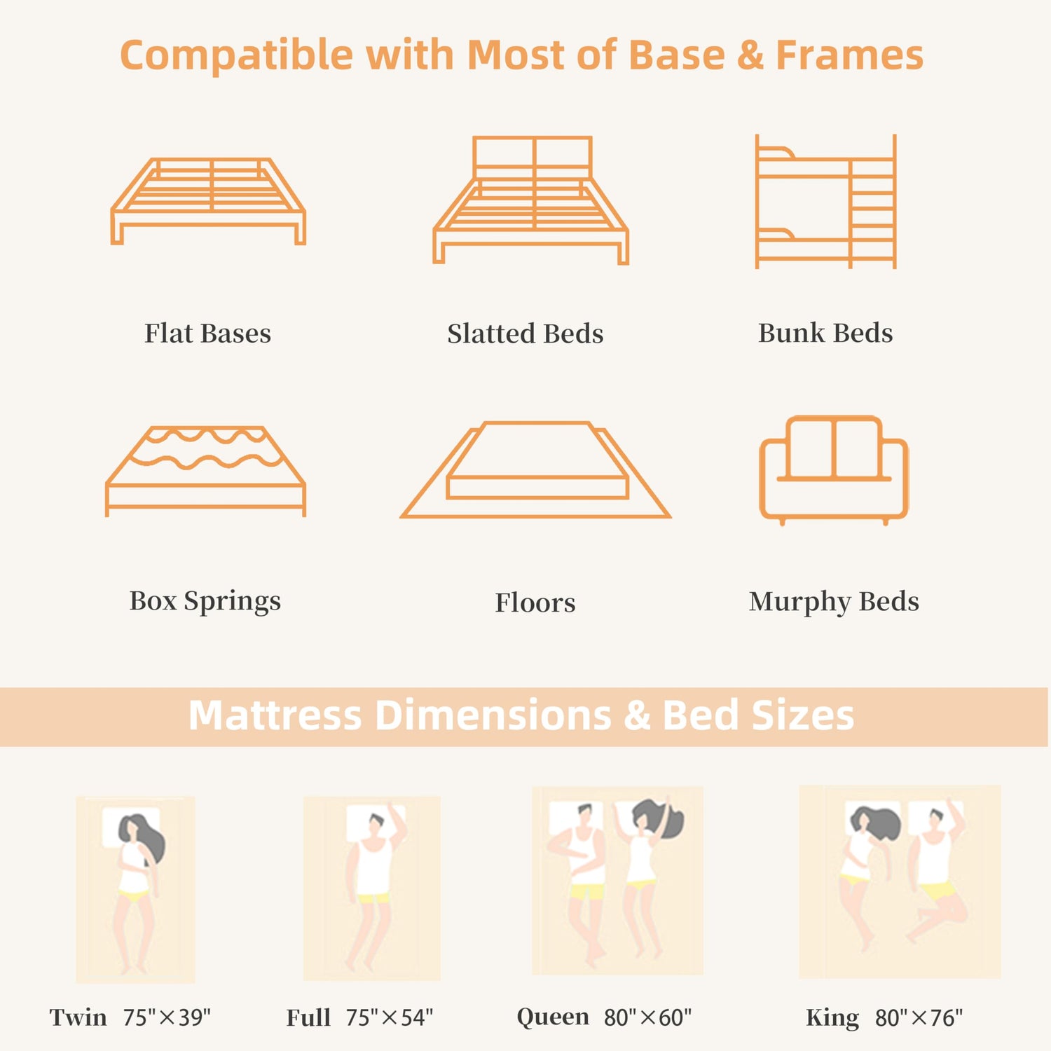 - 【Risk-Free Sleep Trial】Enjoy 100-night risk-free trial and 10-year limited warranty. The mattress Queen bed in a box is compressed, rolled, and shipped, without complicated installation required. For a better sleeping experience, please allow 24-72 hours for the mattress to fully expand. The mattress works with compatible with most bed frames. Need help? The Qabefy support team is here