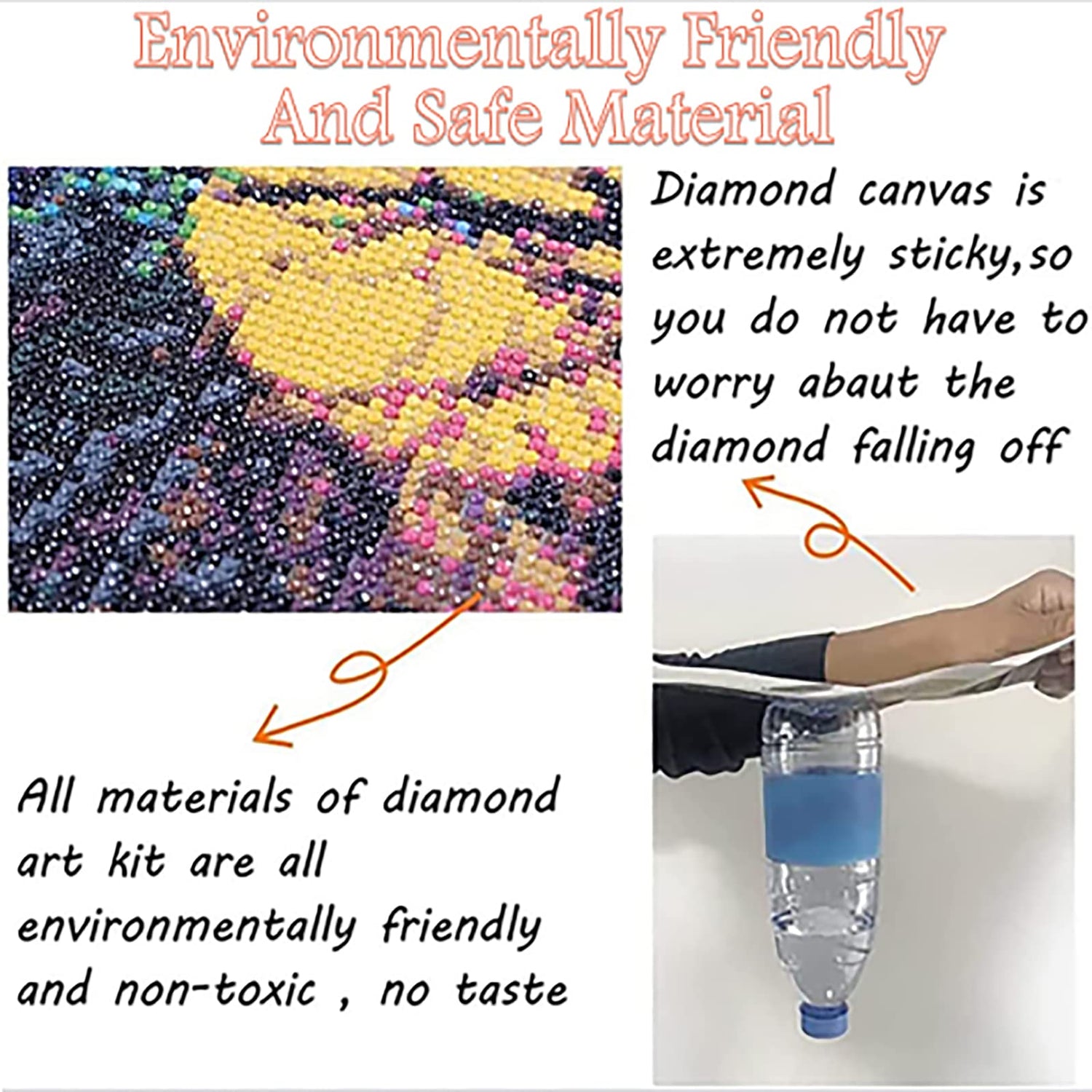 - High Quality Canvas: The diamond painting kit is made of high definition waterproof canvas with clear and natural symbols and numbers, making the DIY process easy and enjoyable. The canvas surface with high strength glue backing and transparent protective film makes the diamonds stick firmly
