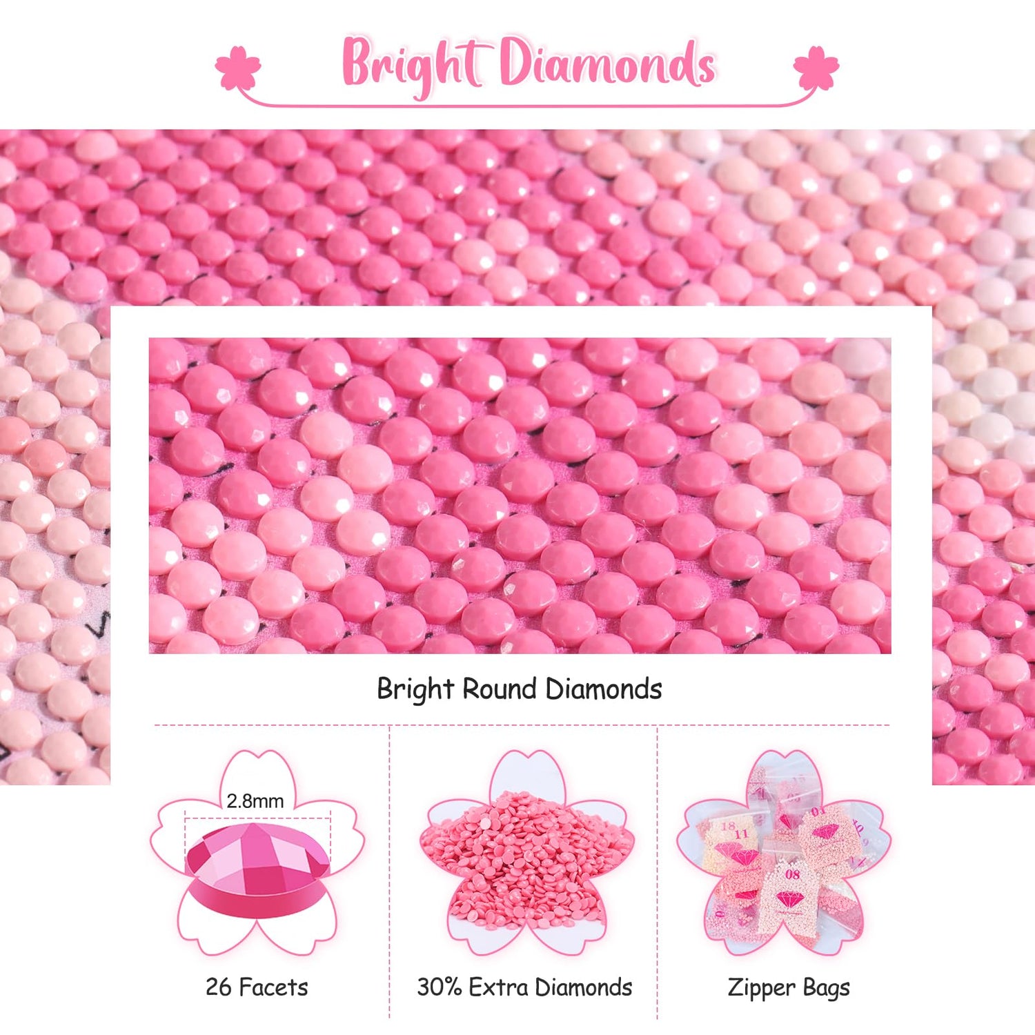 - 【Upgrade Diamonds】Our diamonds are full resin material, the color is bright and not easy to fade, each diamond has 26 facets, so many facets make the diamond very sparkling. The diamonds cover the whole pattern, a finished diamond painting is glowing and very amazing