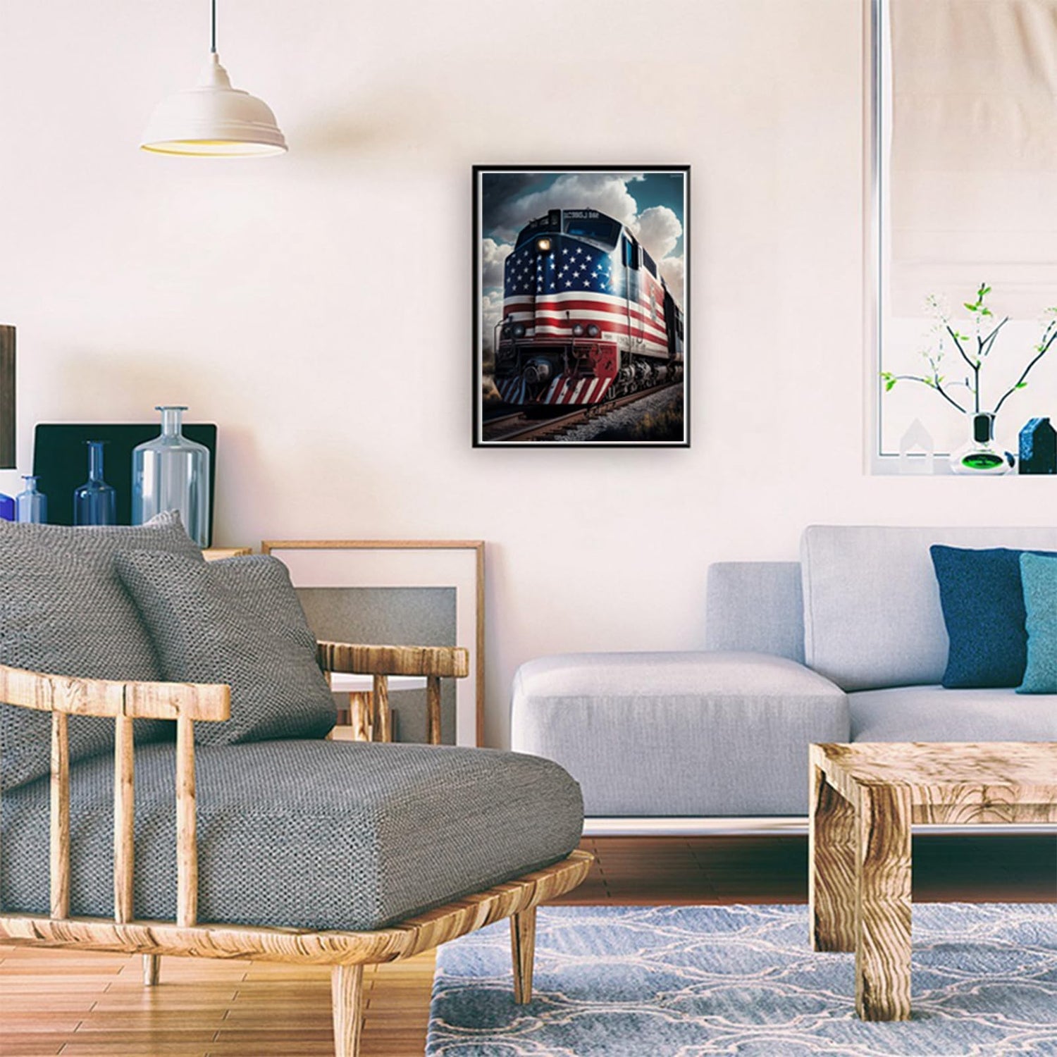 QAZWSX Train American Flag Diamond Painting Kits for Adults, DIY 5D Flag Diamond Art Full Drill for Adult, for Beginner Home Wall Decor Gift 12x16 Inch