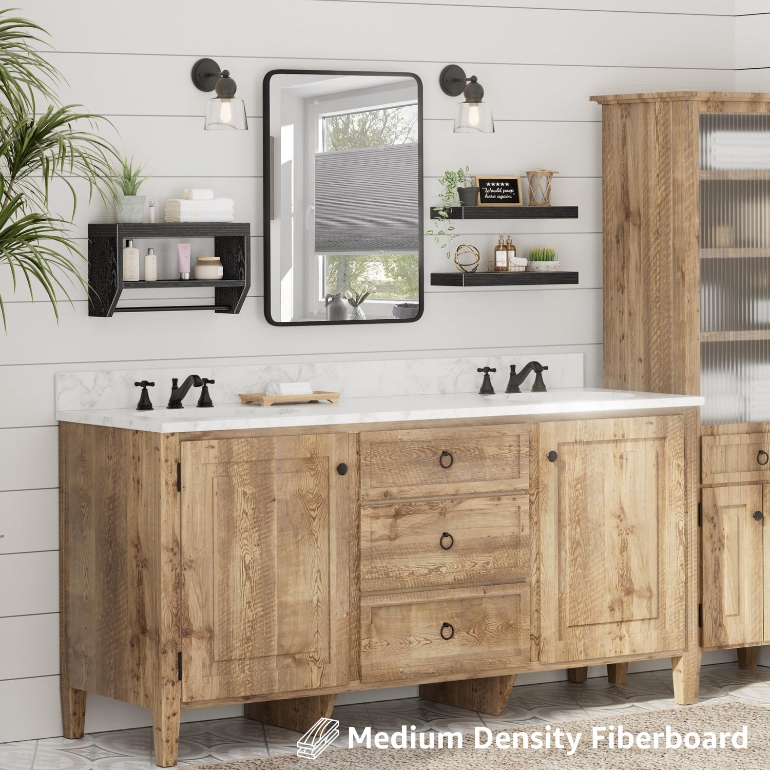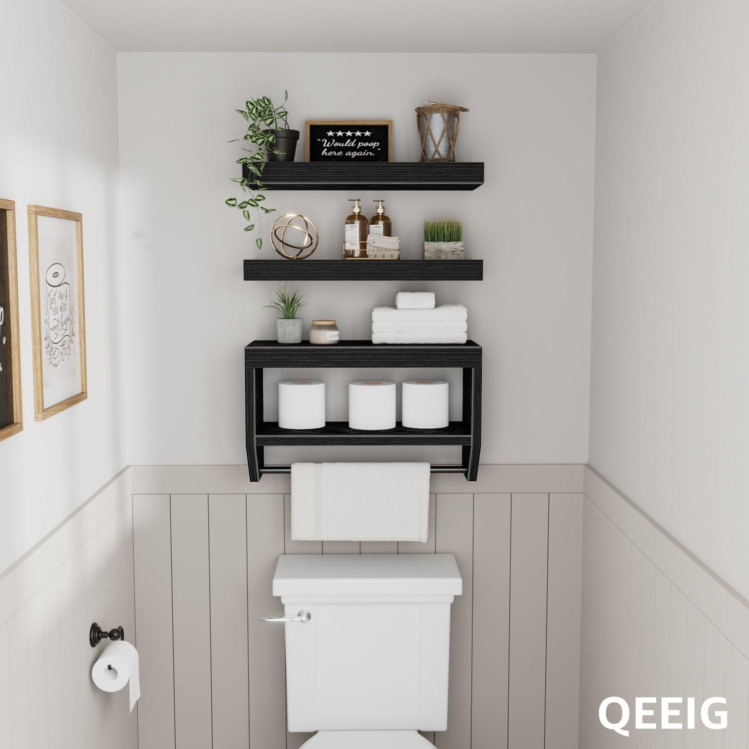 Details: QEEIG Bathroom Floating Shelves for Wall - Shelf Over Toilet Paper Storage Farmhouse 16 inch Set of 3, Black (028-40B3)
