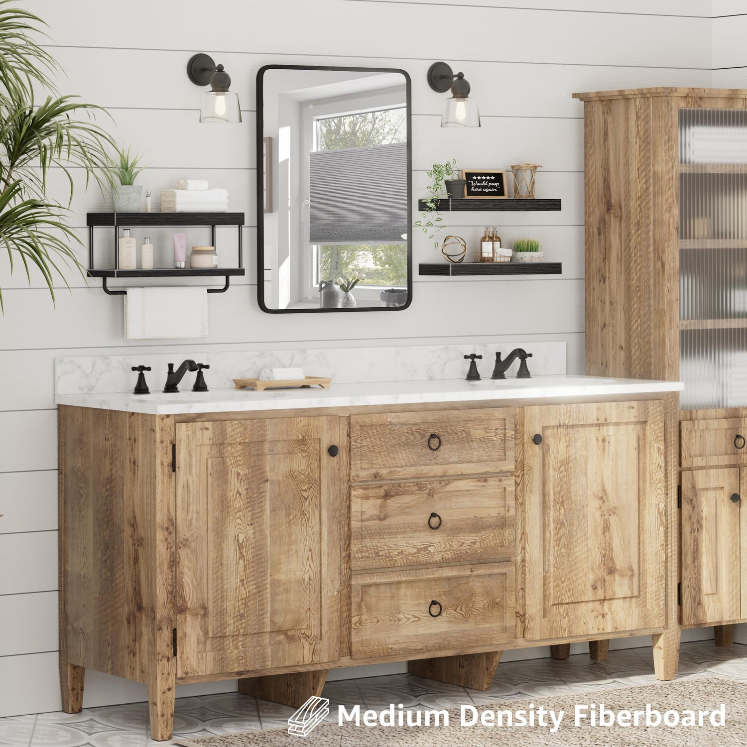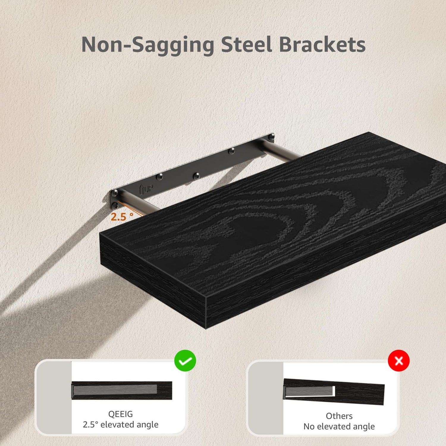 Details: QEEIG Bathroom Shelves Over Toilet - Wall Mounted Shelf Toilet Paper Storage Farmhouse 16 inch Set of 3, Black (027-40B3)