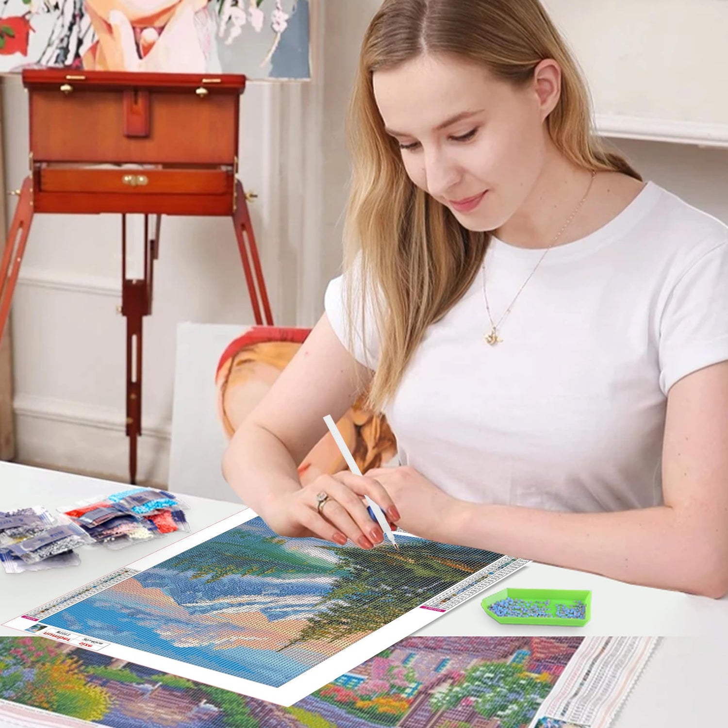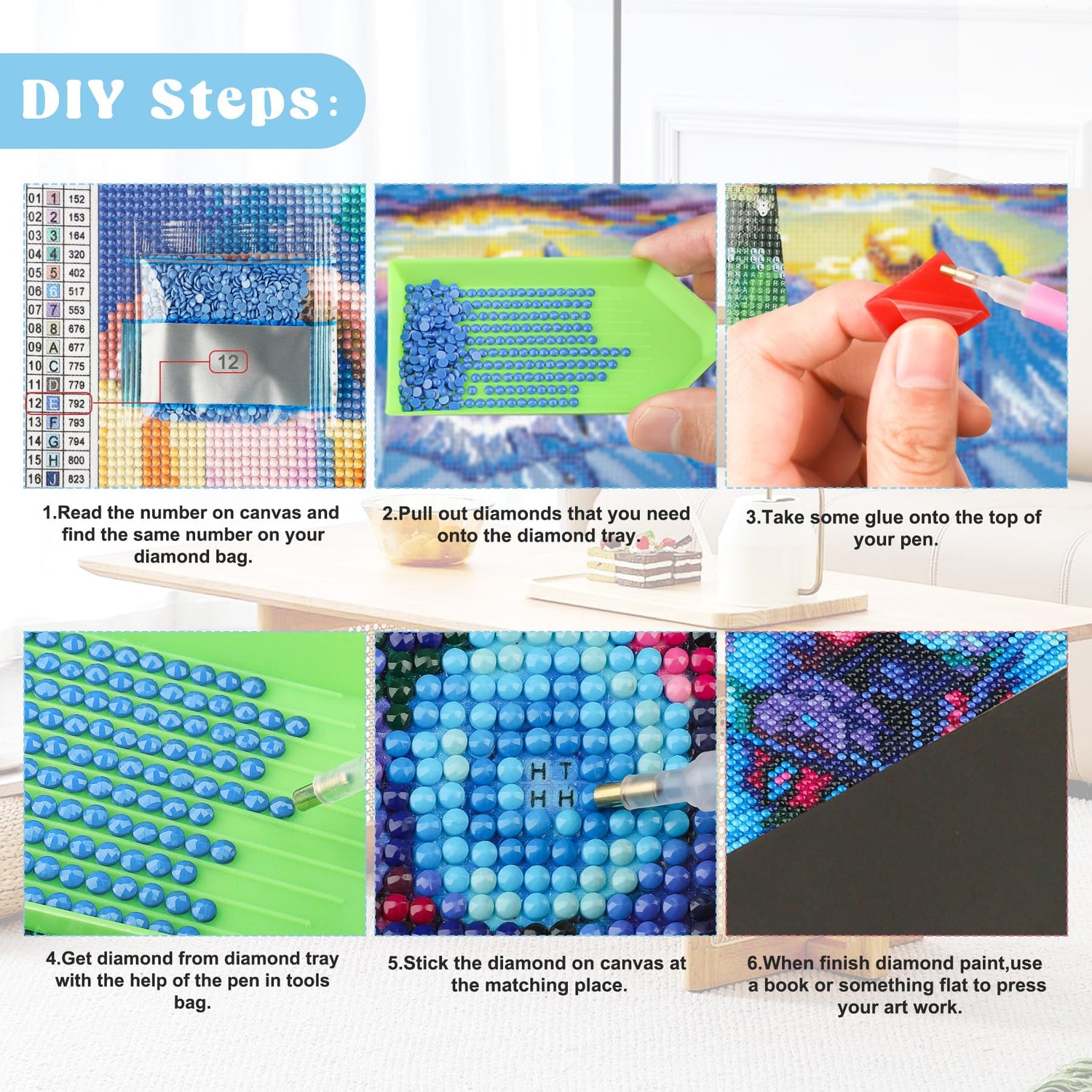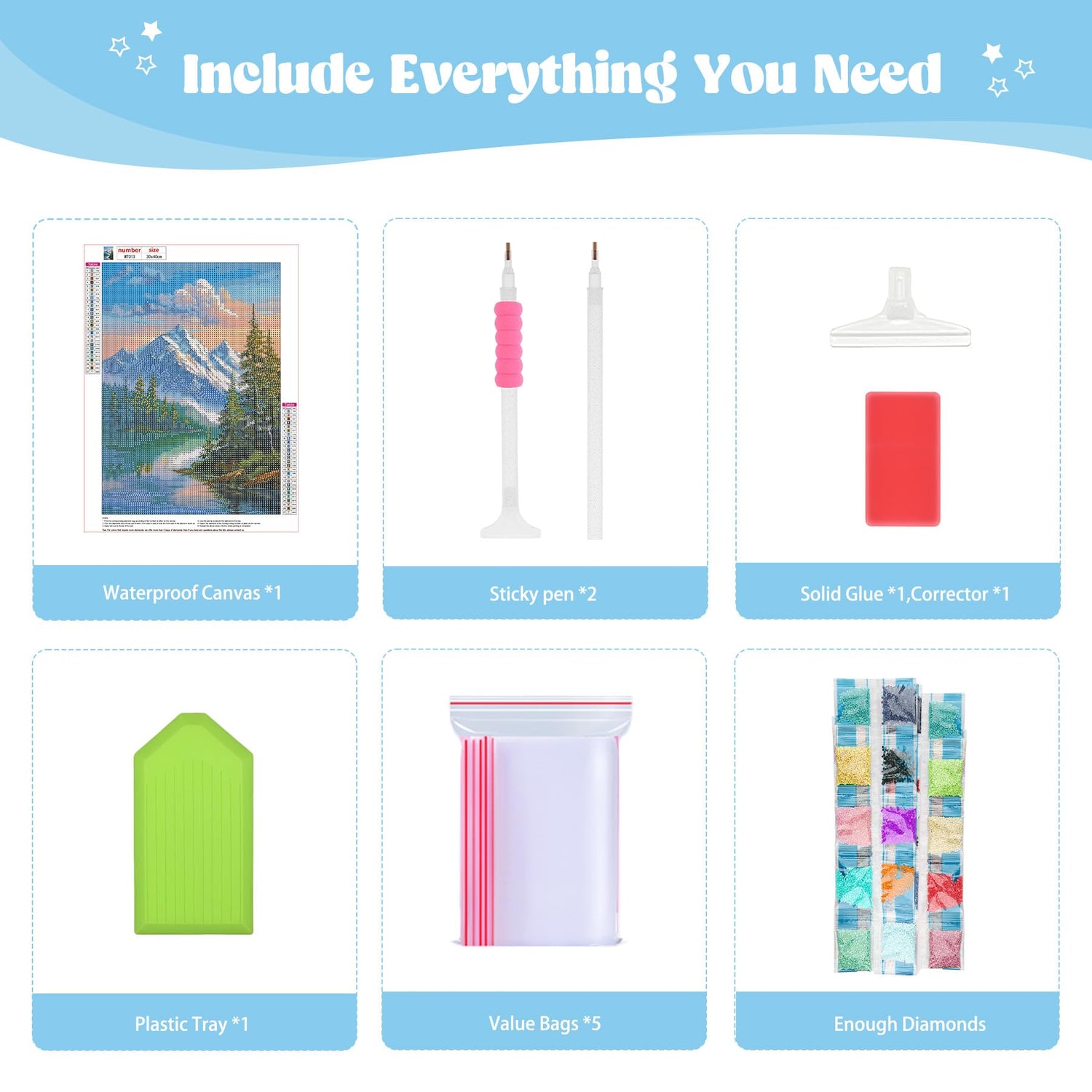 - Contain All Tools - Diamond art painting kits contain all tools:1 high definition canvas,1 diamond tray,1 big wax,2 diamond pens,1 replaceable correction pen,5 ziplock bags and enought round diamonds, so you don’t need to purchase any additional tools