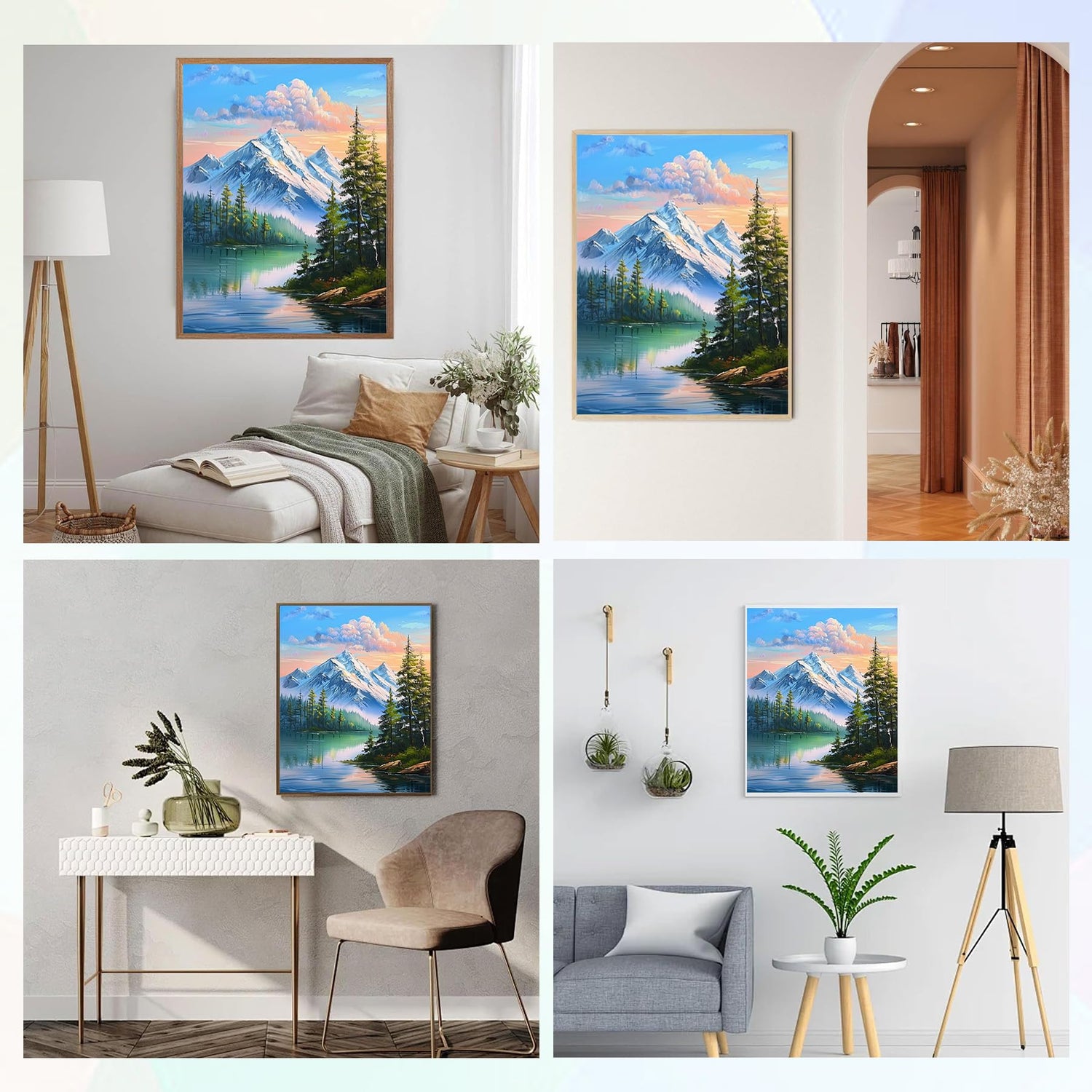 QENSPE 5D Diamond Art Snowy Mountain DIY Round Full Drill Diamond Painting Kits for Beginners,Landscape Diamond Dots for Adults,Home Wall Decor & Gift Perfect for Relaxation 12x16 inch