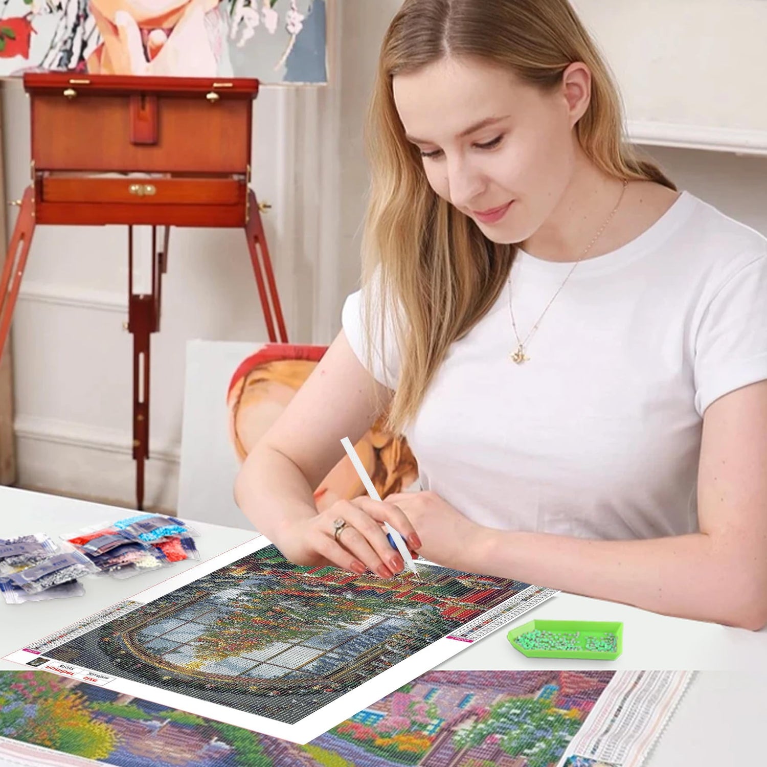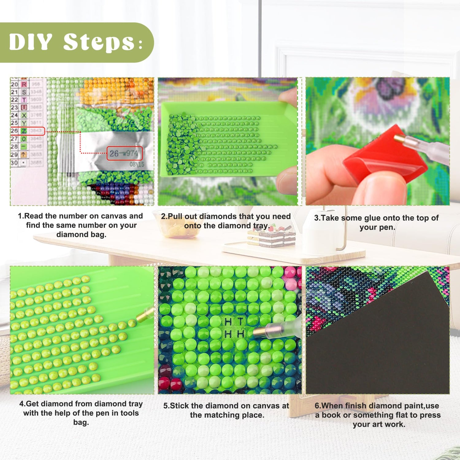- Contain All Tools - Diamond art painting kits contain all tools:1 high definition canvas,1 diamond tray,1 big wax,2 diamond pens,1 replaceable correction pen,5 ziplock bags and enought round diamonds, so you don’t need to purchase any additional tools