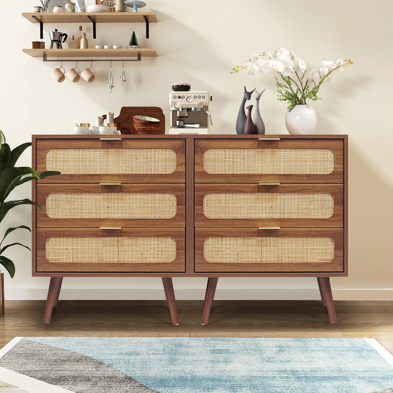 - Accent Rattan Cabinet: This rattan dresser is a combination of modern and classic. The three drawers double dresser is designed with natural rattan, and the metal handle makes it look low-key yet luxurious. It can be easily matched with other furniture, which can better decorate your home and add charm to your home.