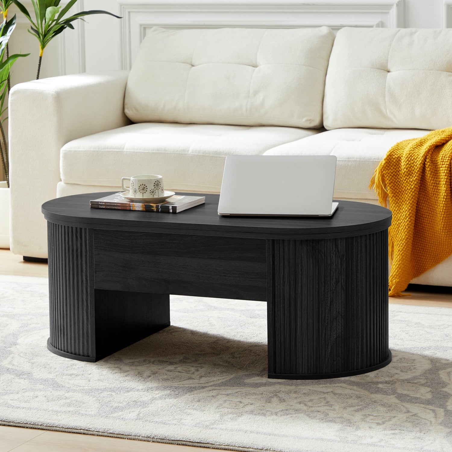 QHITTY Fluted Coffee Table with Lifting Top, Oval Wood Lift Top Coffee Table with Hidden Compartment, Mid Century Pull up Center Tables for Living Room, Office - Black