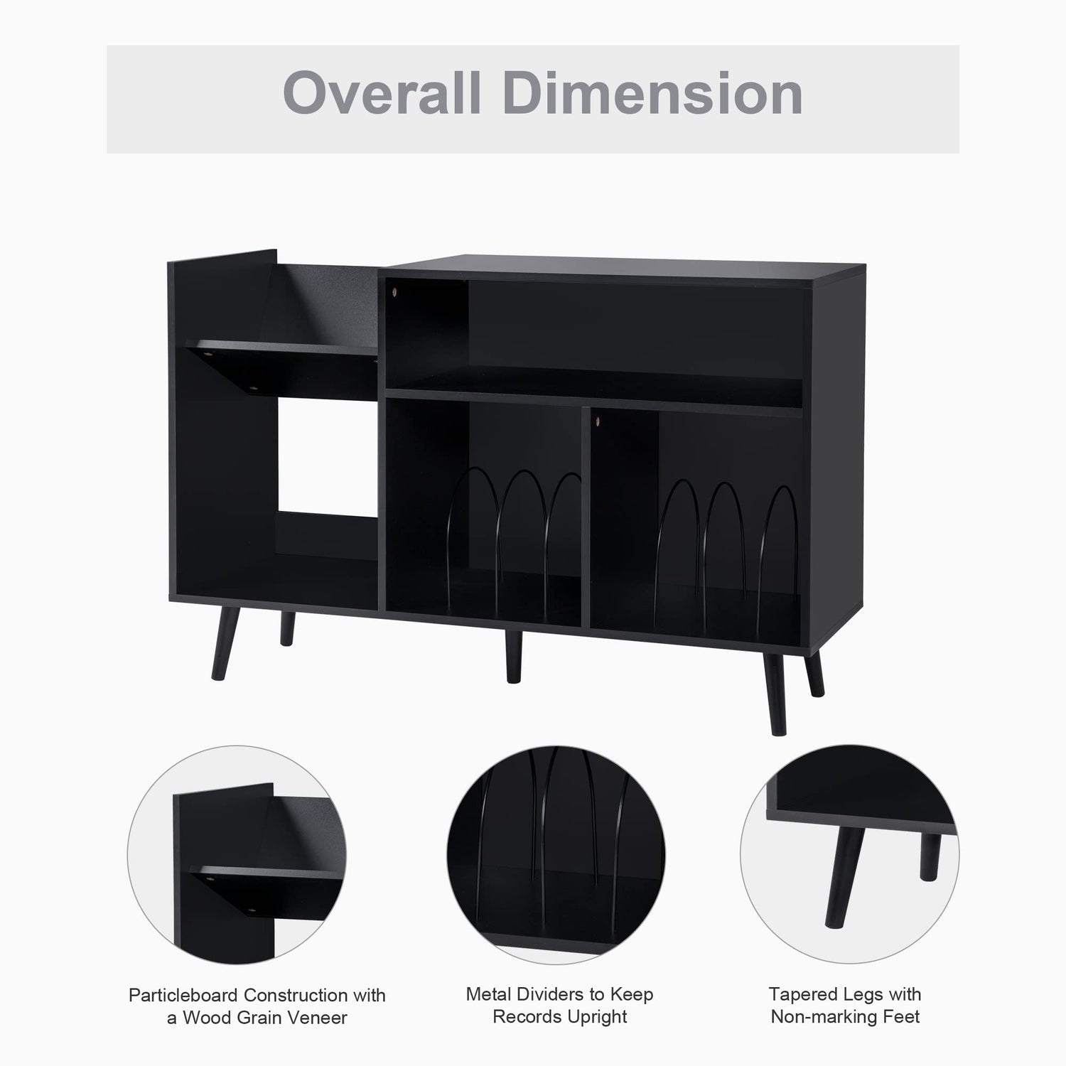 - Sturdy and Durable: This vinyl record storage cabinet is constructed of durable MDF material and wood legs, which greatly extend the cabinet's service life. Its surface is smooth, and cleaning is easy, only use a wet towel gently wipe away the dirt.