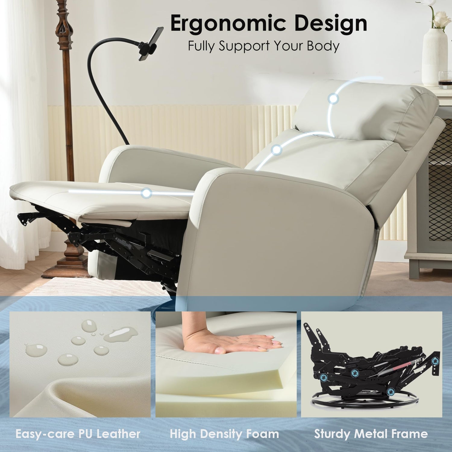 - Bracket Design:Our recliner devices right at your fingertips,Enjoy your favorite shows and movies with the built-in phone holder. It's the perfect spot to place your phone , making for a hands-free viewing experience that complements the chair's relaxing rocking motion.