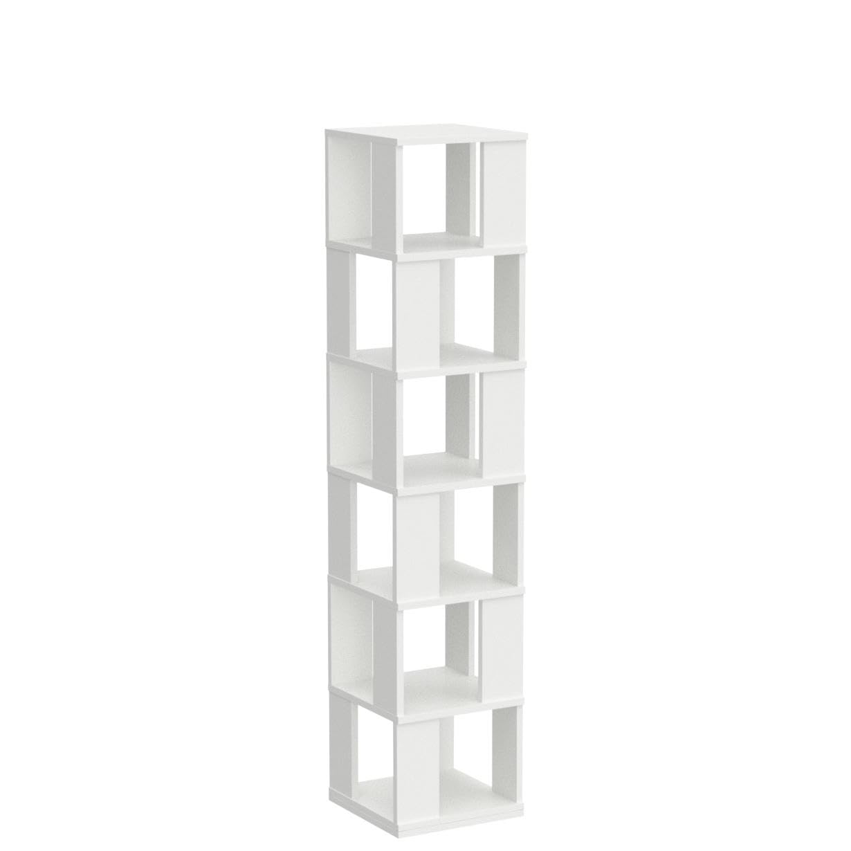 Modern 6-Tier Rotating Wooden Bookcase in White – Stylish Corner Storage Display Rack
