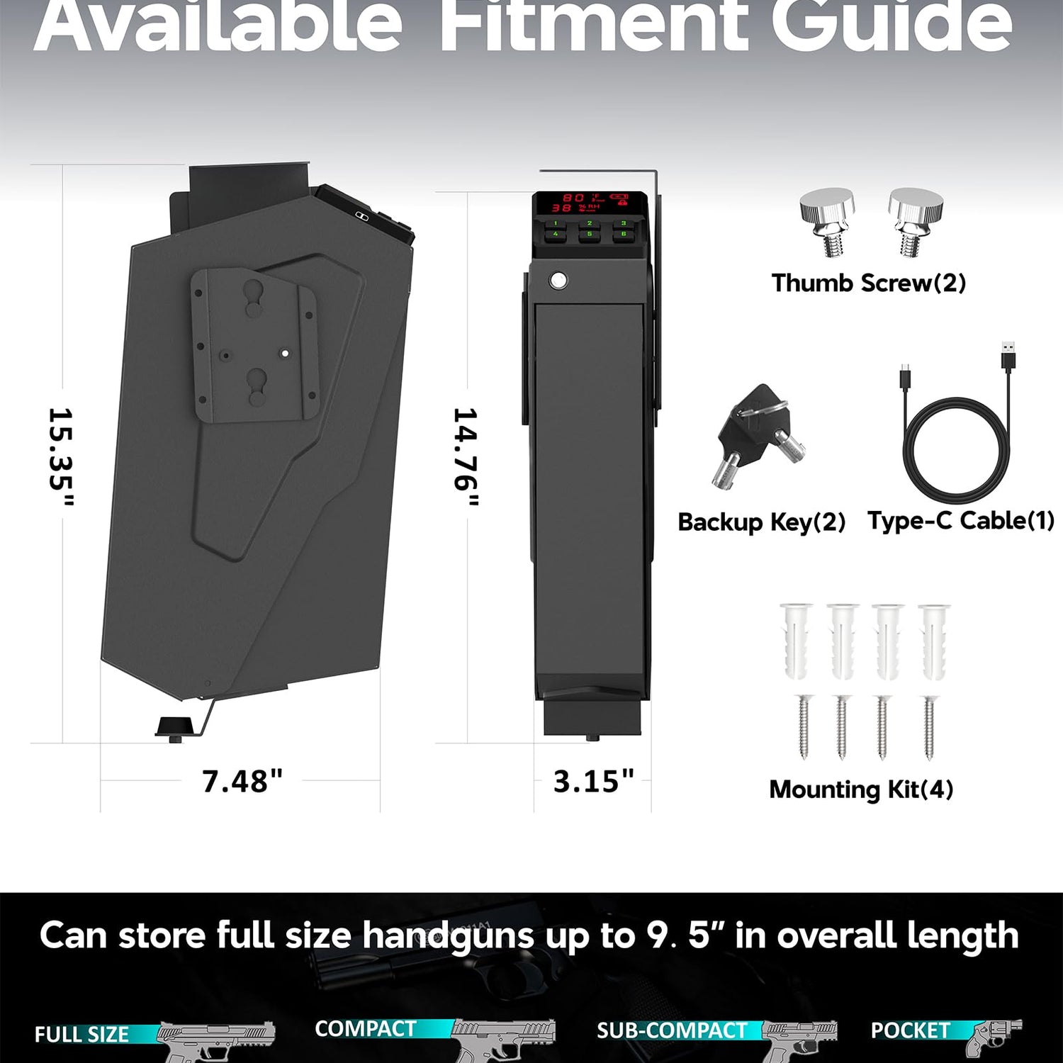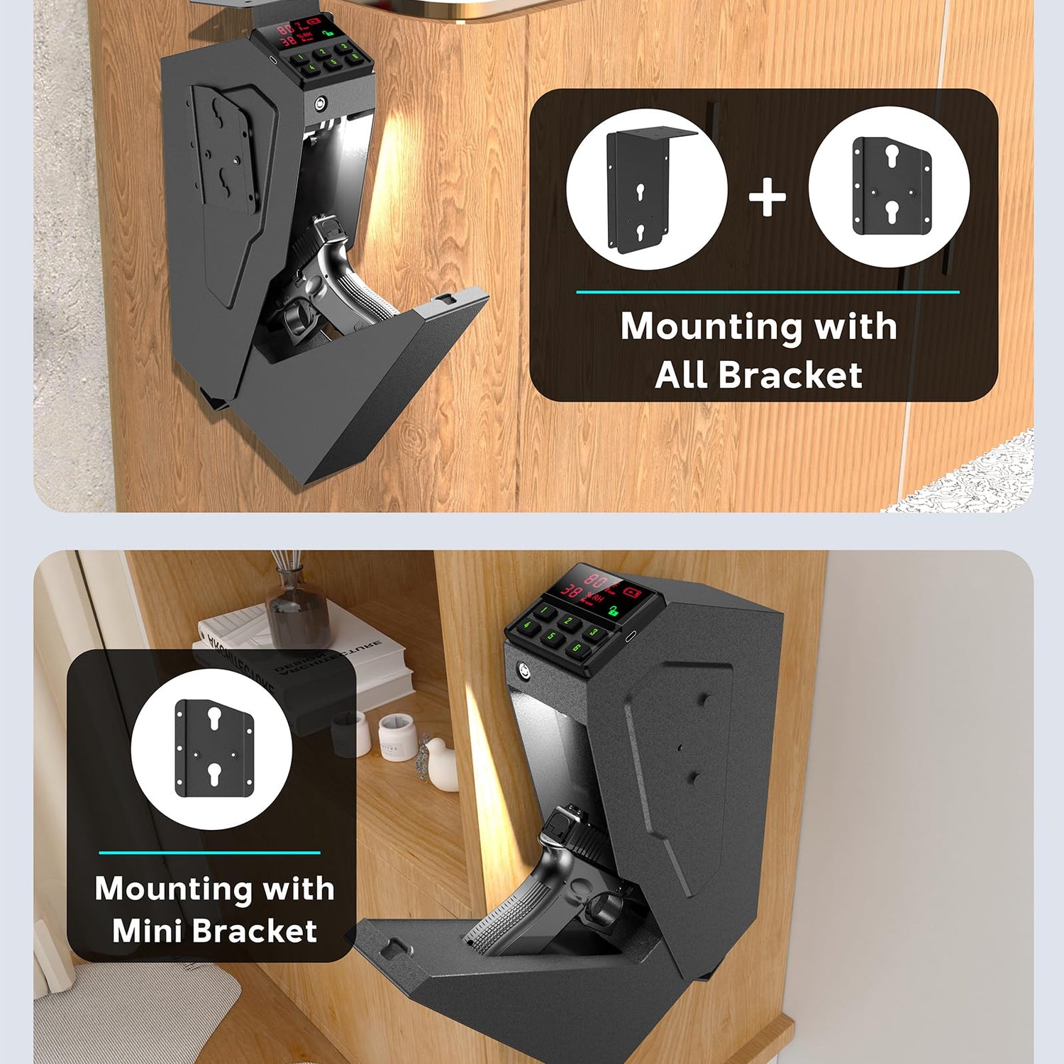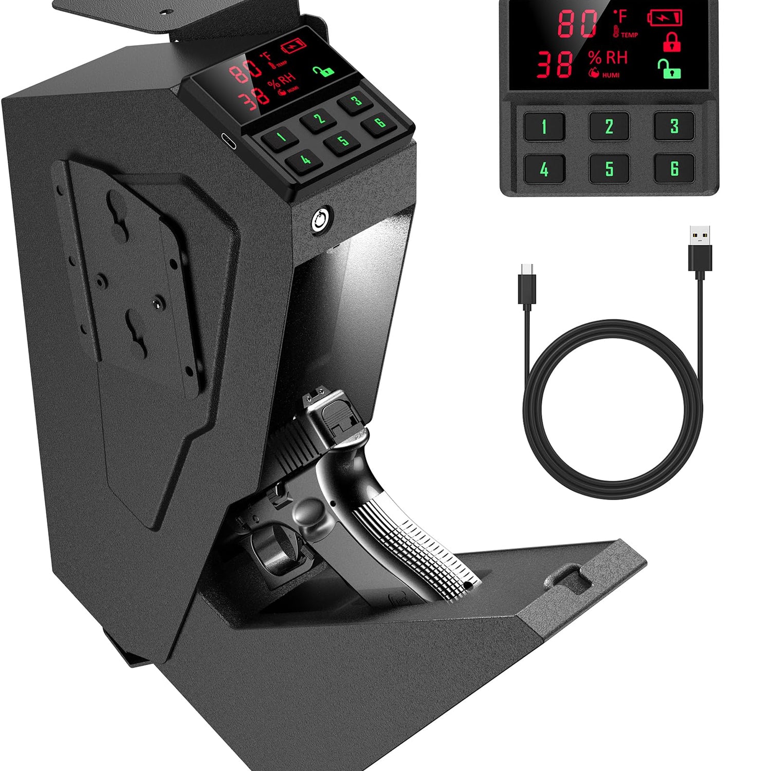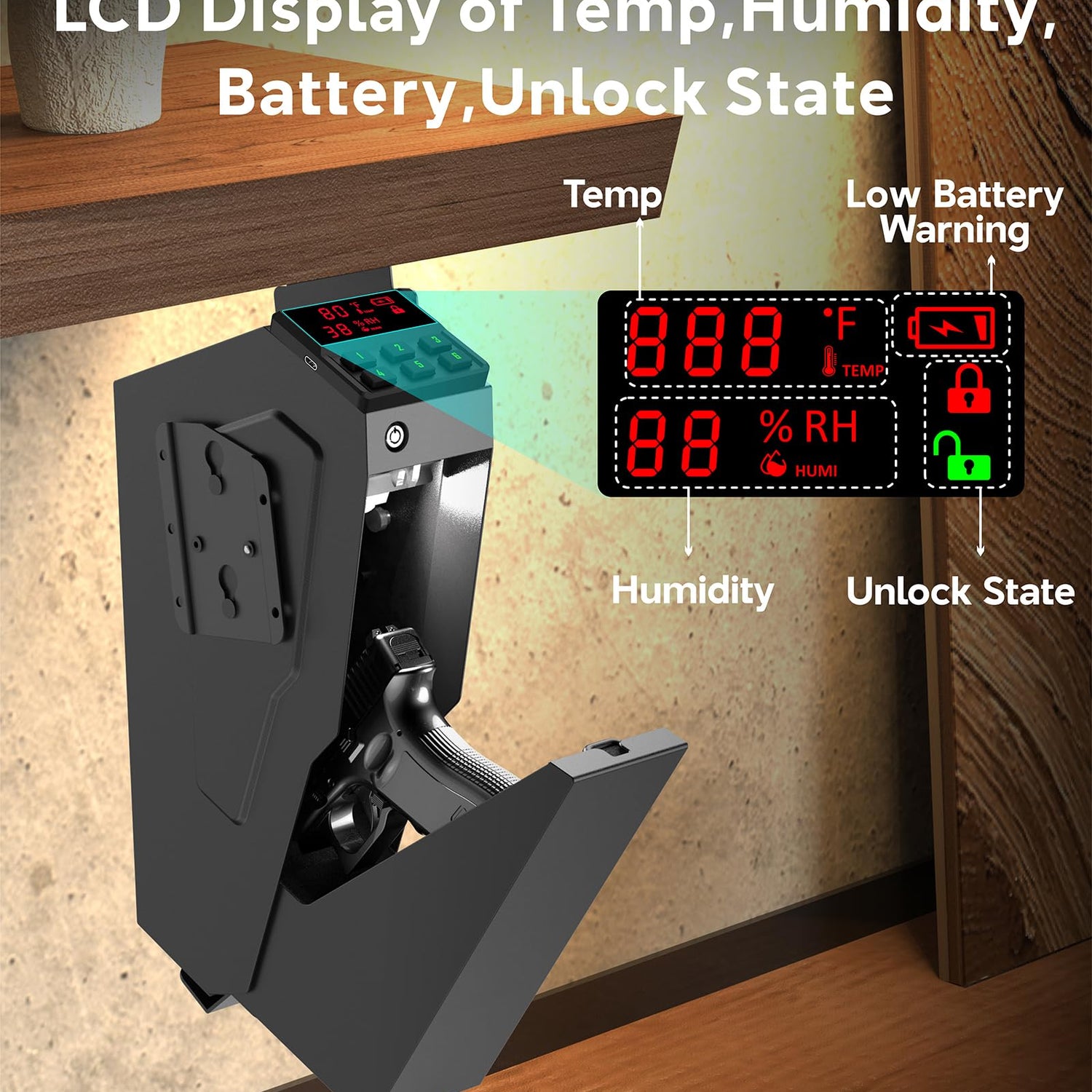 - Advanced LCD Display: Equipped with an innovative LCD of Temp & Humidity & Low Battery Warning & Unlock State , this gun safe provides real-time readings of internal conditions, helping you to manage humidity levels and protect your firearms from moisture damage