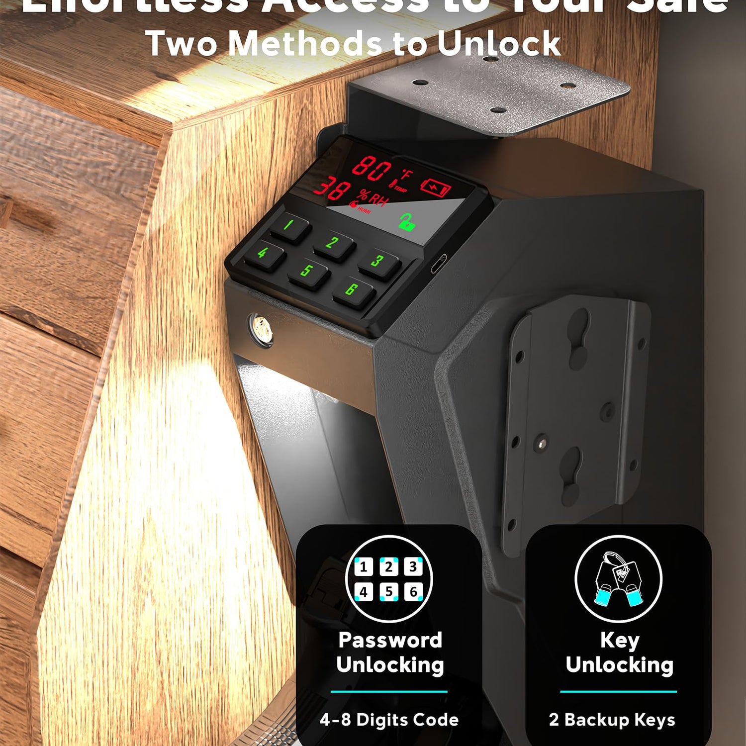 - 2 Ways to Access: The handgun safe offers two ways to access your firearms: passcode keypad/backup keys, ensuring rapid and secure entry whenever you need your pistol safe.