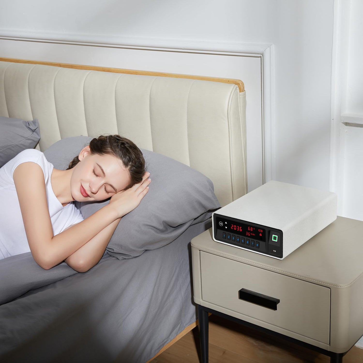 QINGENO Smart Gun Safe with Security Cable - Biometric Pistol Safe for 2 Handgun 3 Ways Quick Access with Fingerprint/Keypad/Key, for Nightstand Bedside Home with LCD and Voice Guide (White)