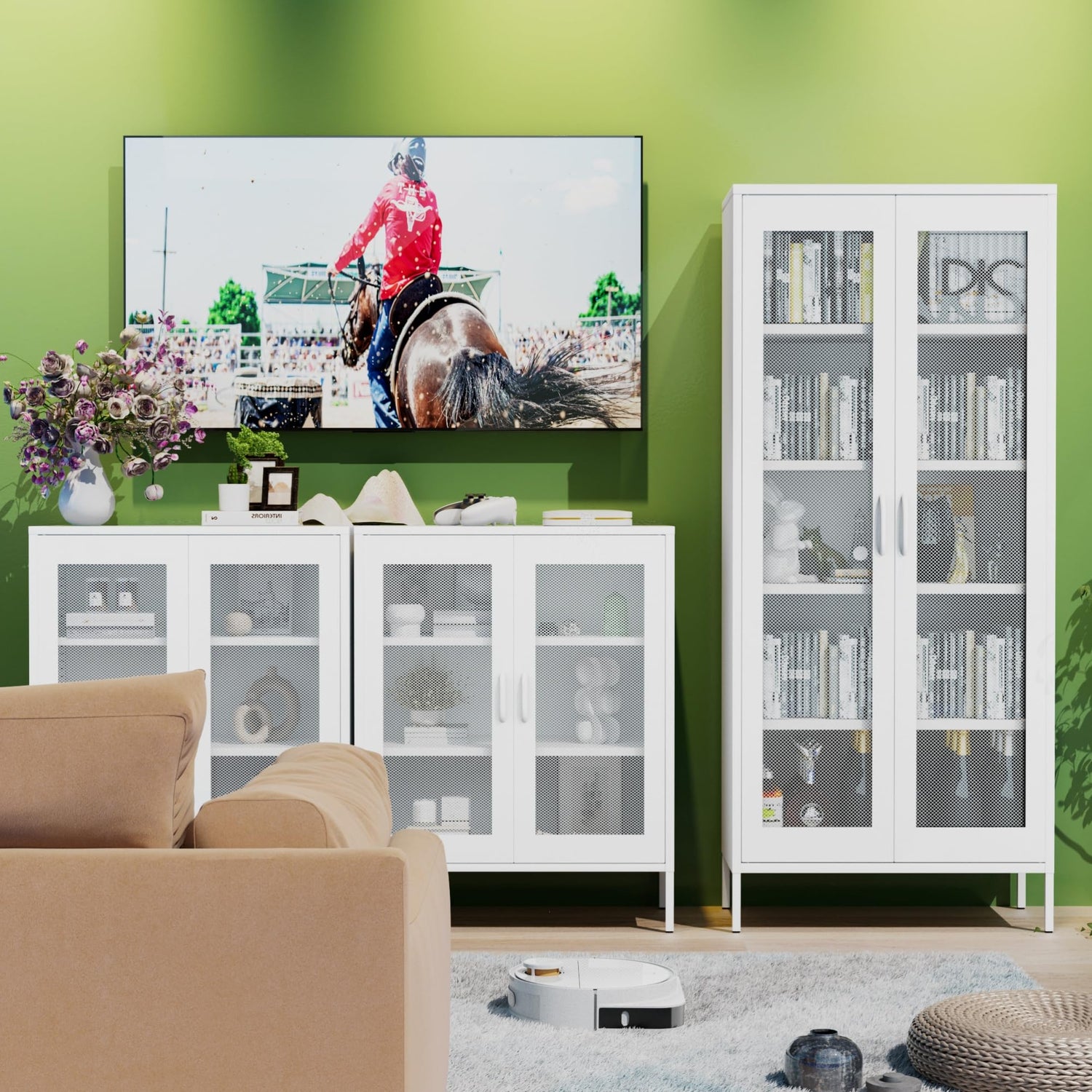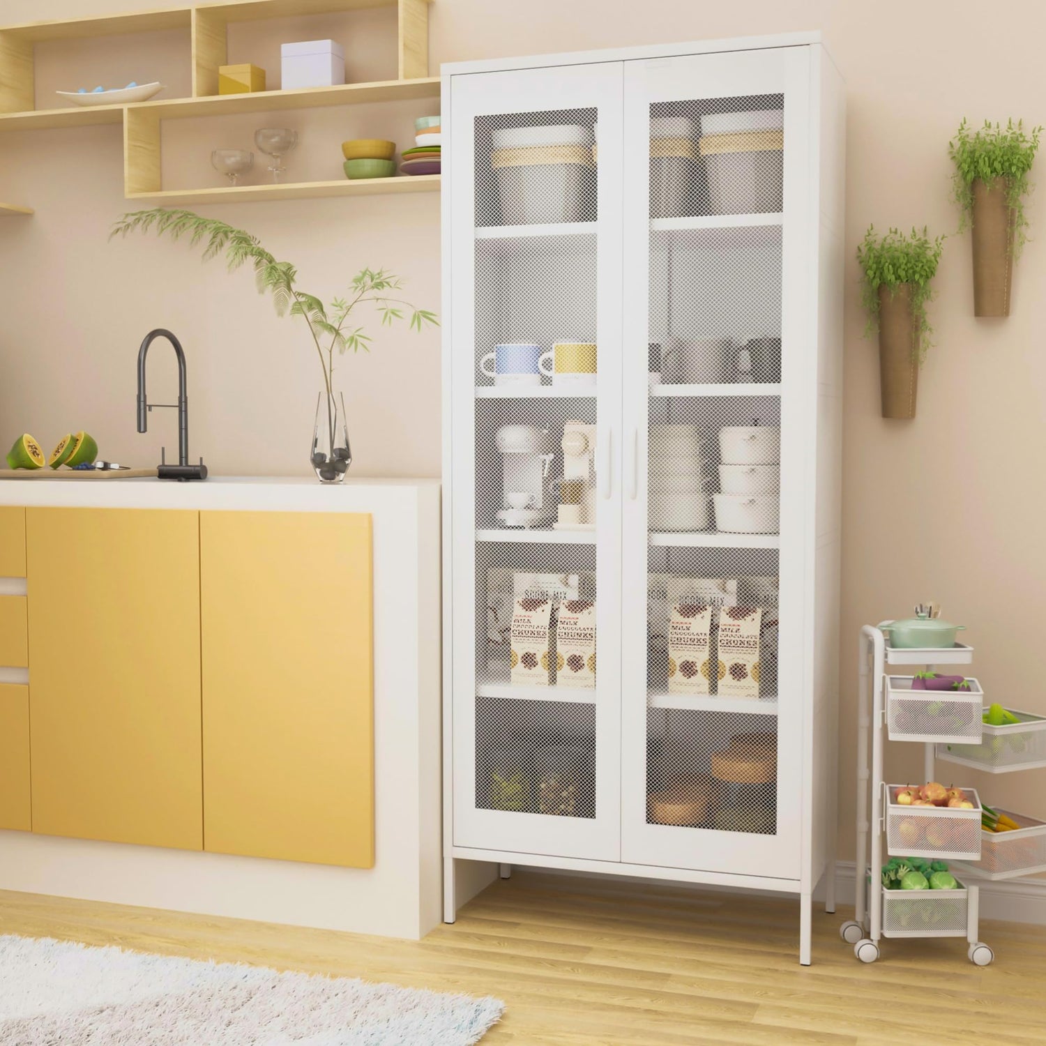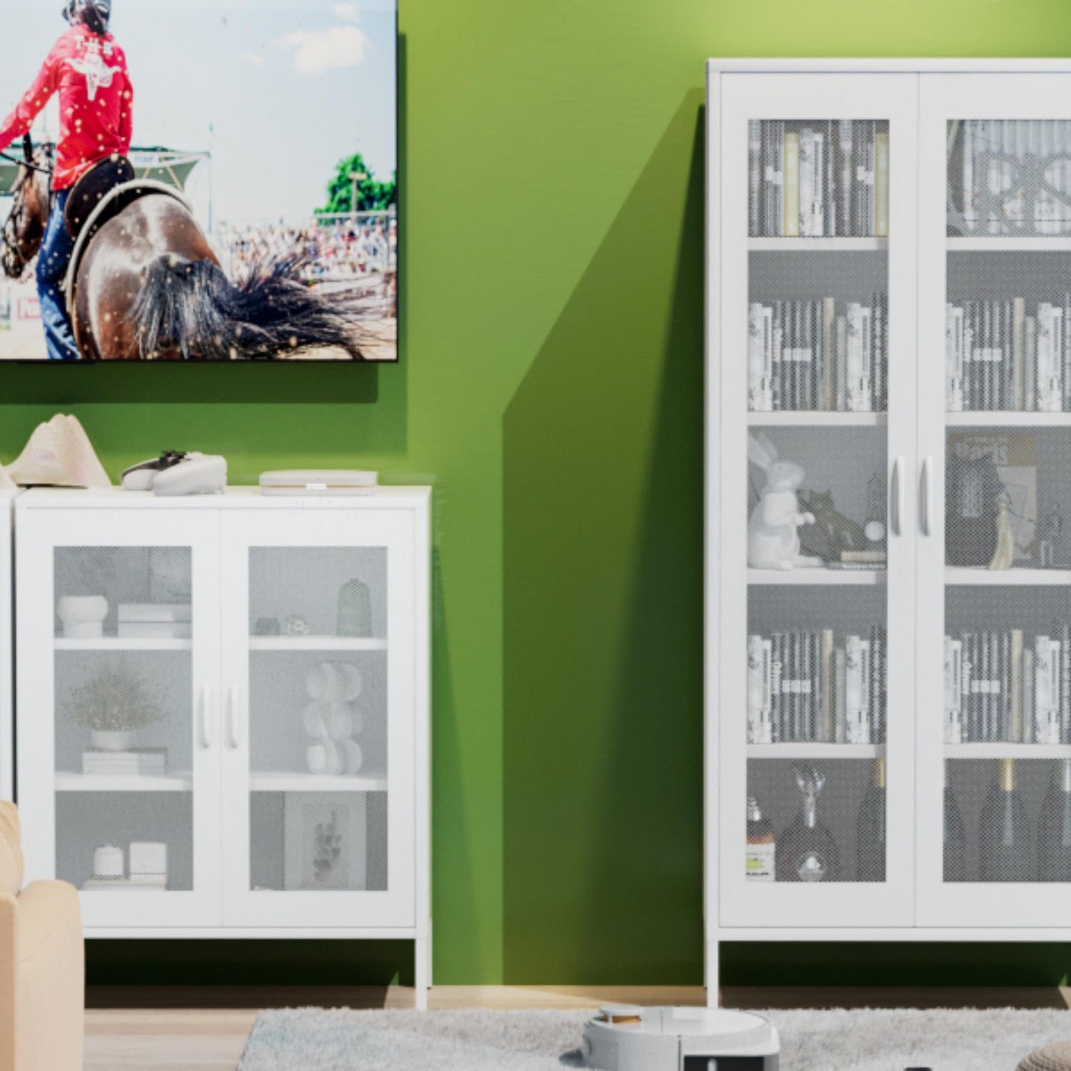 - Flexible Storage Solutions: With 4 adjustable shelves, you can customize the storage space to fit various items, from food and files to everyday essentials. NET door design, metal texture appearance fashion, both dust-proof and can see the internal display items and location