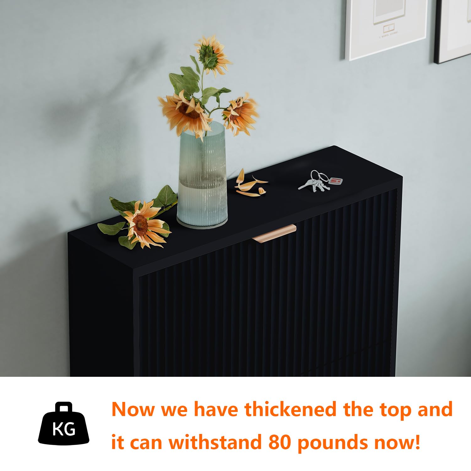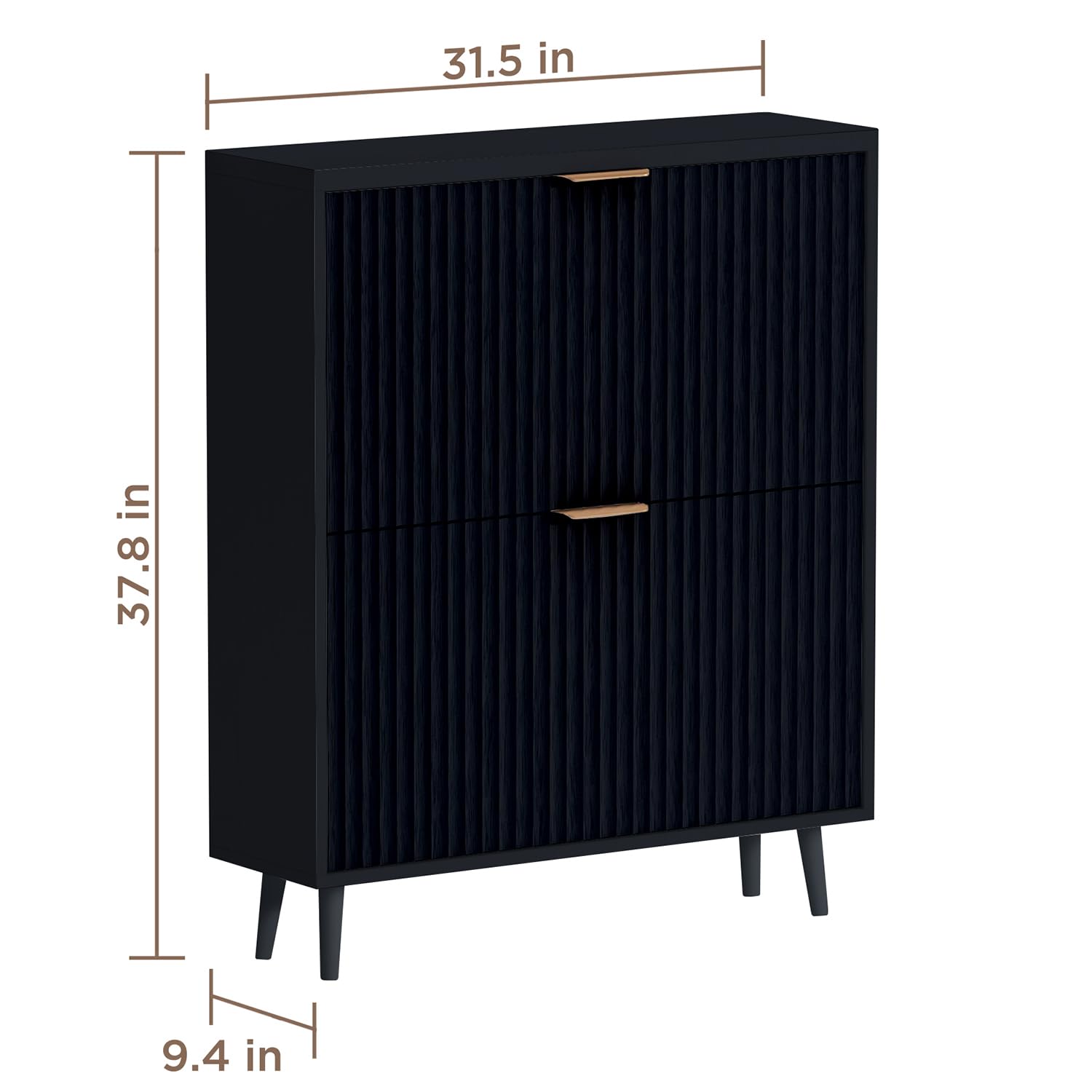 QIVOMIX Shoe Cabinet Storage,Modern Freestanding Organizer with 2 Flip Drawers,Narrow Shoe Rack Cabinet for Entryway,Black