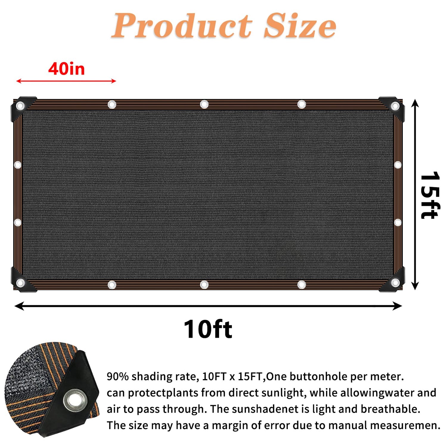 QLOFEI Shade Cloth for Garden, 90% Sunblock Neting Cover Shade Cloth with Grommets, Sun Protection Screens for Patio Kennel Chicken Coop Pergola Greenhouse Plants Cover Mesh Tarp, 10x15 FT