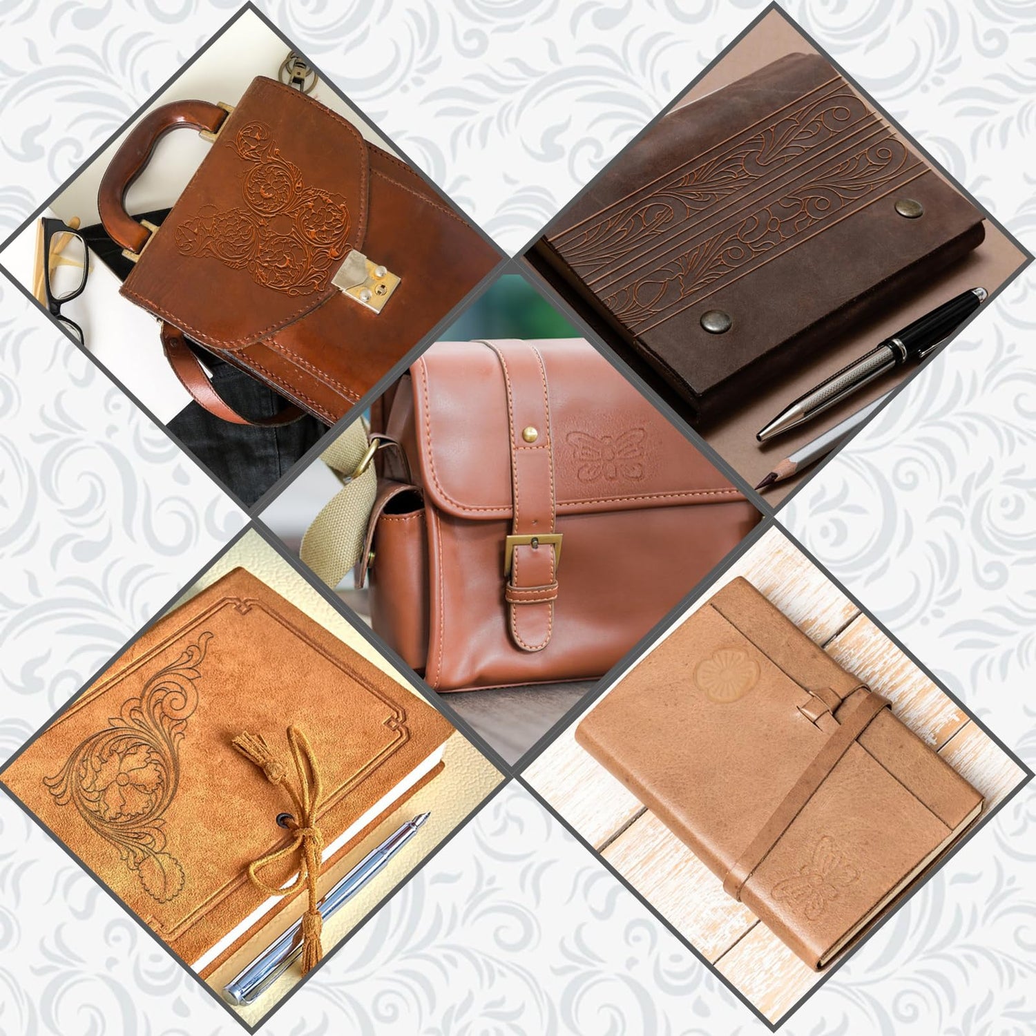 - Leather engraving accessories: We have useful leather crafting accessories for leather crafting DIY, the adjustable rotary knife has something for everyone. The stainless steel tracing pen is used to draw the outline of the engraved pattern, the rubber hammer saves us more effort when making leather prints, and the cleaning sponge can make the leather soak better. This complete set of leather crafting tools can help you DIY the perfect wallet, fanny pack, and more.