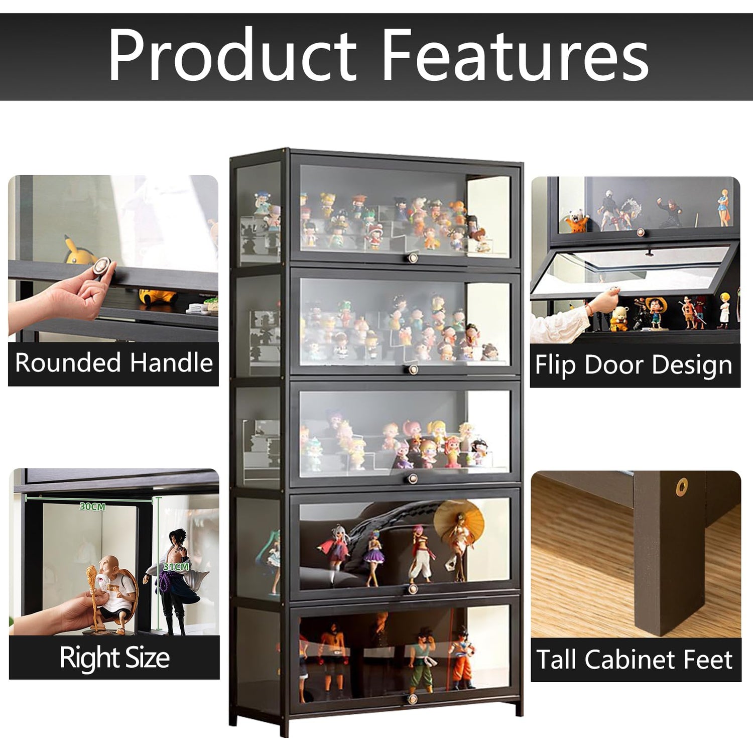 QOEUDD Curio Display Cabinet with Acrylic Glass Door, 5-Tier Tall Display Case, Curio Cabinet & Bookcase for Collectibles, Display Shelf for Home, Reading Nook, Playroom, Living Room